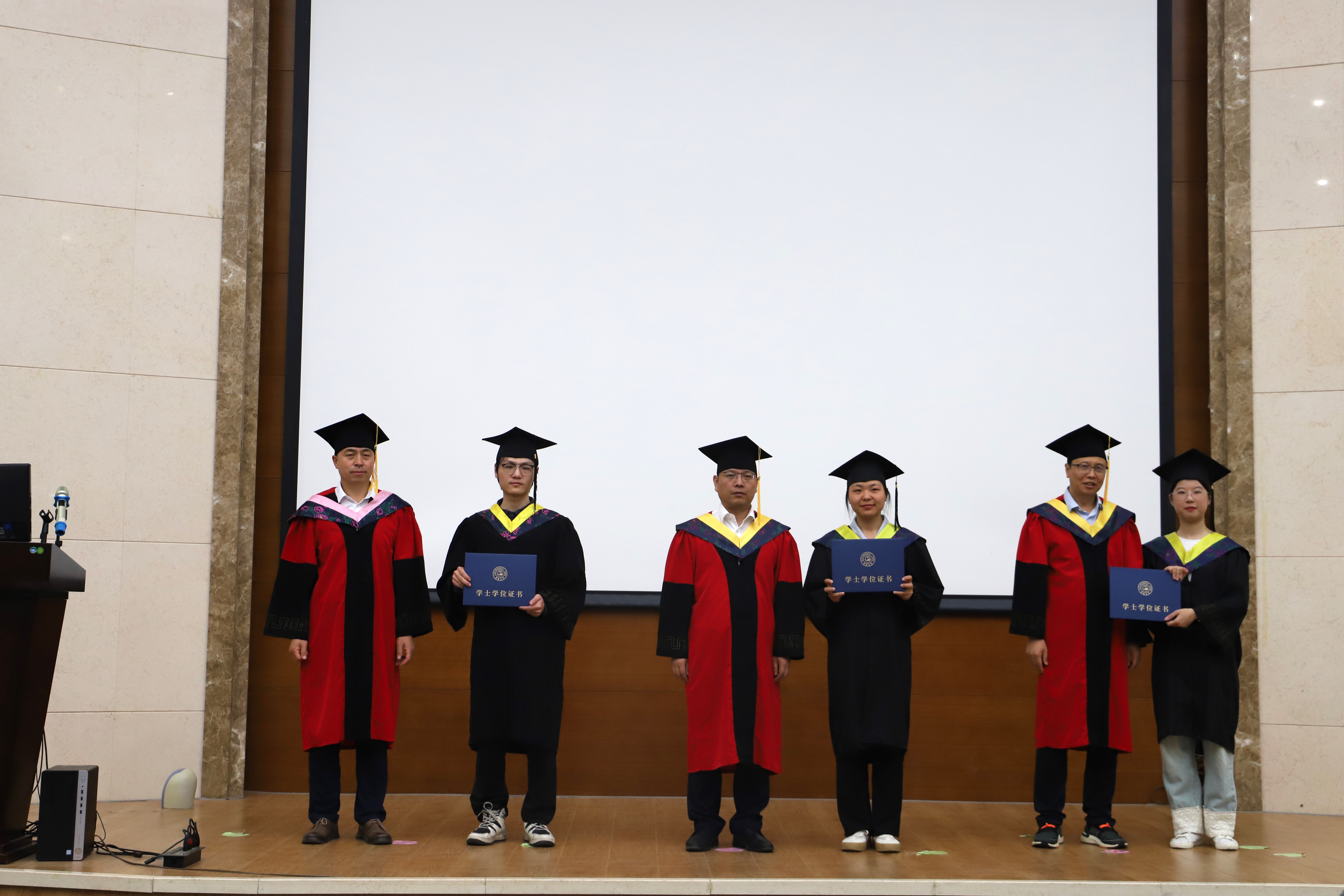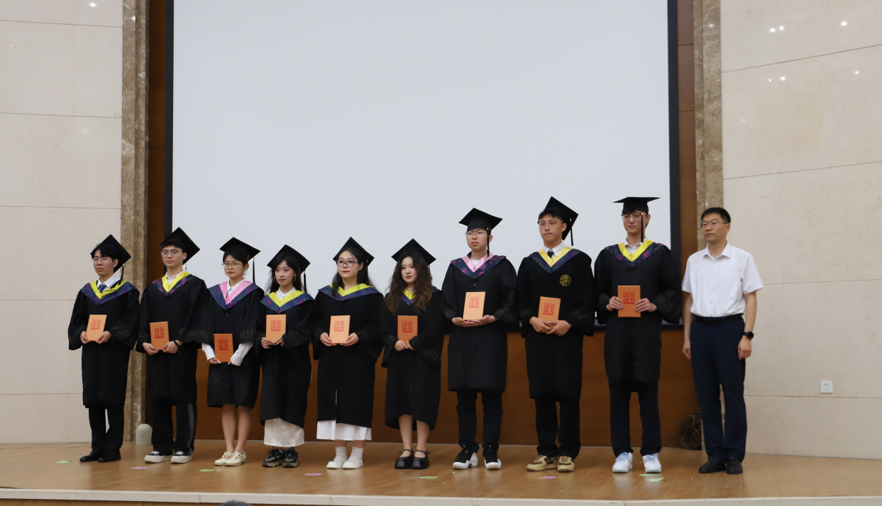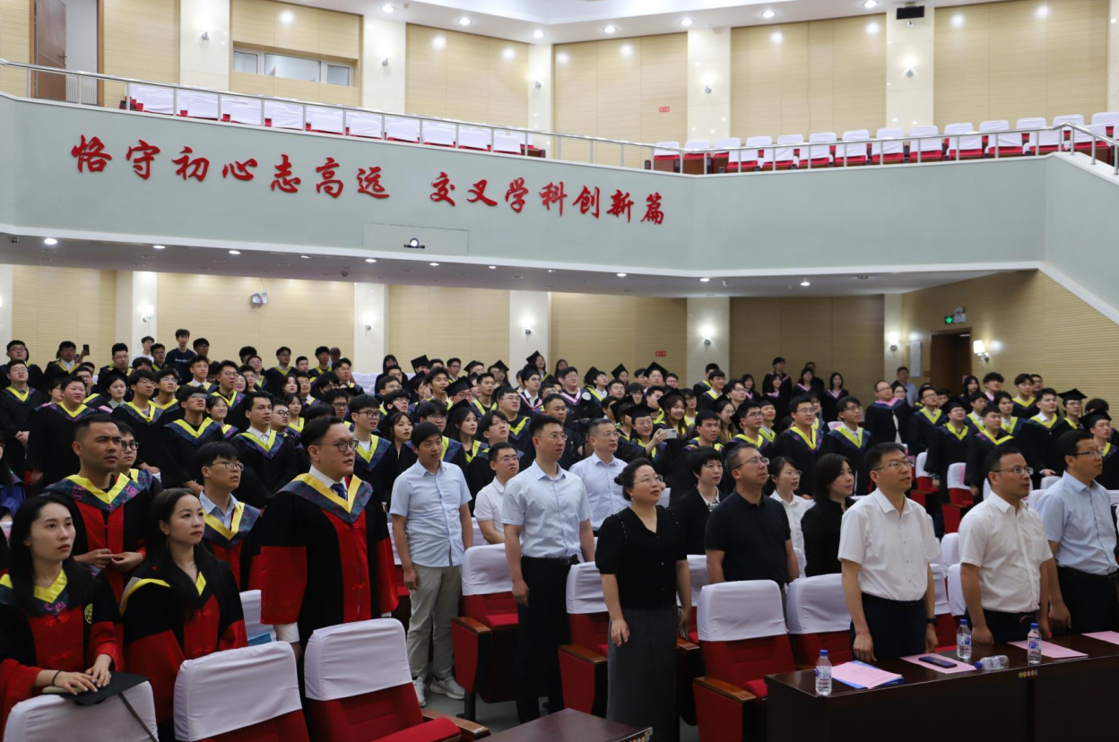 大会在雄浑激昂的国歌声中拉开帷幕,全体人员庄严肃立,齐声高唱国歌。随后,副院长郭鸿鹏教授宣读本科毕业生、毕业研究生名单。院长付君教授、常务副院长张志辉教授、副院长郭鸿鹏教授为每名毕业生拨穗正冠、颁发学位证书,并合影留念。接着,行政副院长钱锋宣读优秀毕业研究生、优秀本科毕业生名单,党委书记杨民为优秀毕业生颁奖。