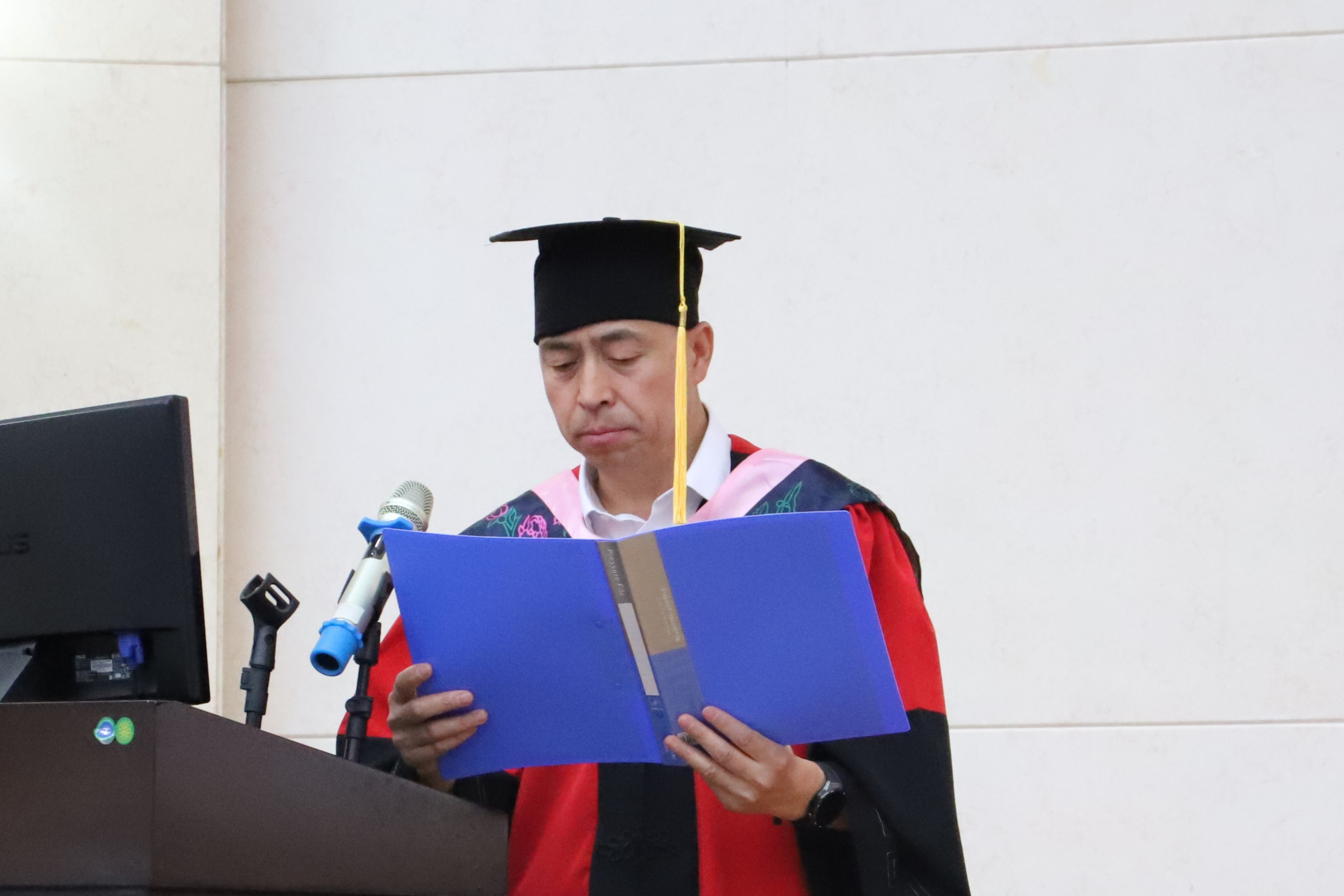 最后,院长付君教授发表致辞。他对全体毕业生顺利完成学业表示热烈祝贺,并强调“大家成长与国家的发展紧密相连。在当今时代,国家正面临着诸多机遇与挑战,无论是科技创新、产业升级,还是乡村振兴、绿色发展,都离不开每一位有志青年的奋斗与奉献。”他希望大家将个人成长轨迹与国家发展同频共振,在新的人生阶段,脚踏实地,锐意创新,勇担使命,在各自领域发光发热,贡献吉大智慧。