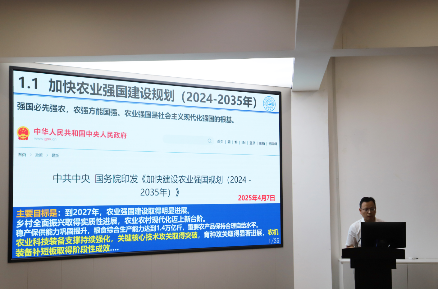 本次主题党课系统梳理了党和国家在农业强国建设领域的相关政策。结合翔实的数据与案例,阐释了农业强国建设的历史必要性和战略意义。聚焦我国农机装备领域,分析了我国农机发展的历史、现状及趋势。鼓励青年教师和学生坚持“四个面向”,将科研工作融入国家重大战略需求中,在农业强国中贡献青春力量和吉大智慧。