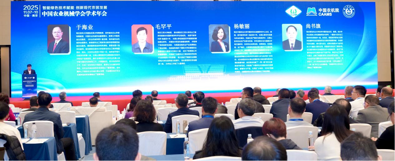 近日,2025年中国农业机械学会学术年会在江苏省南京市召开,中国科学院任露泉院士、中国工程院罗锡文院士、陈学庚院士、赵春江院士、沈其荣院士,中国农业机械学会及各分支机构、中国农业机械化科学研究院集团有限公司、全国高等院校、科研院所、企事业单位的知名专家和优秀研究生代表等600余名科技工作者出席大会。