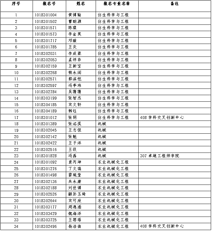 经生物与农业工程学院、仿生科学与工程学院“申请考核制”招生资格审核小组对考生申请材料的审核评估,确定以下名单中考生进入综合考核环节,现公布如下:
