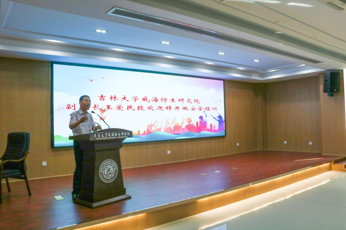 随后,威海仿生研究院副院长王爱民向全体师生简要介绍了威海的地理环境和气候特点,特别提醒大家要树立安全第一意识。他详细列出了安全要求,以确保同学们在实习期间的安全与健康。首先,安全意识必须时刻保持警惕,无论是在实习期间还是日常生活中,安全第一的理念都应贯穿始终。其次,王爱民提醒师生注意交通安全,特别是在南海新区人少车快的区域,大家必须遵守交通规则,防止交通意外发生;严禁在江河湖海游泳;注意饮食安全,确保在食堂就餐;严格遵守带队老师的要求,夜间尽量避免外出;第三、对于实习单位和人才公寓的安全规定,王爱民也提出了严格的要求,强调禁止在公寓内使用违章电器,外出时必须锁好门窗,防止财产损失,保持室内卫生,遵守实习单位的安全规定。