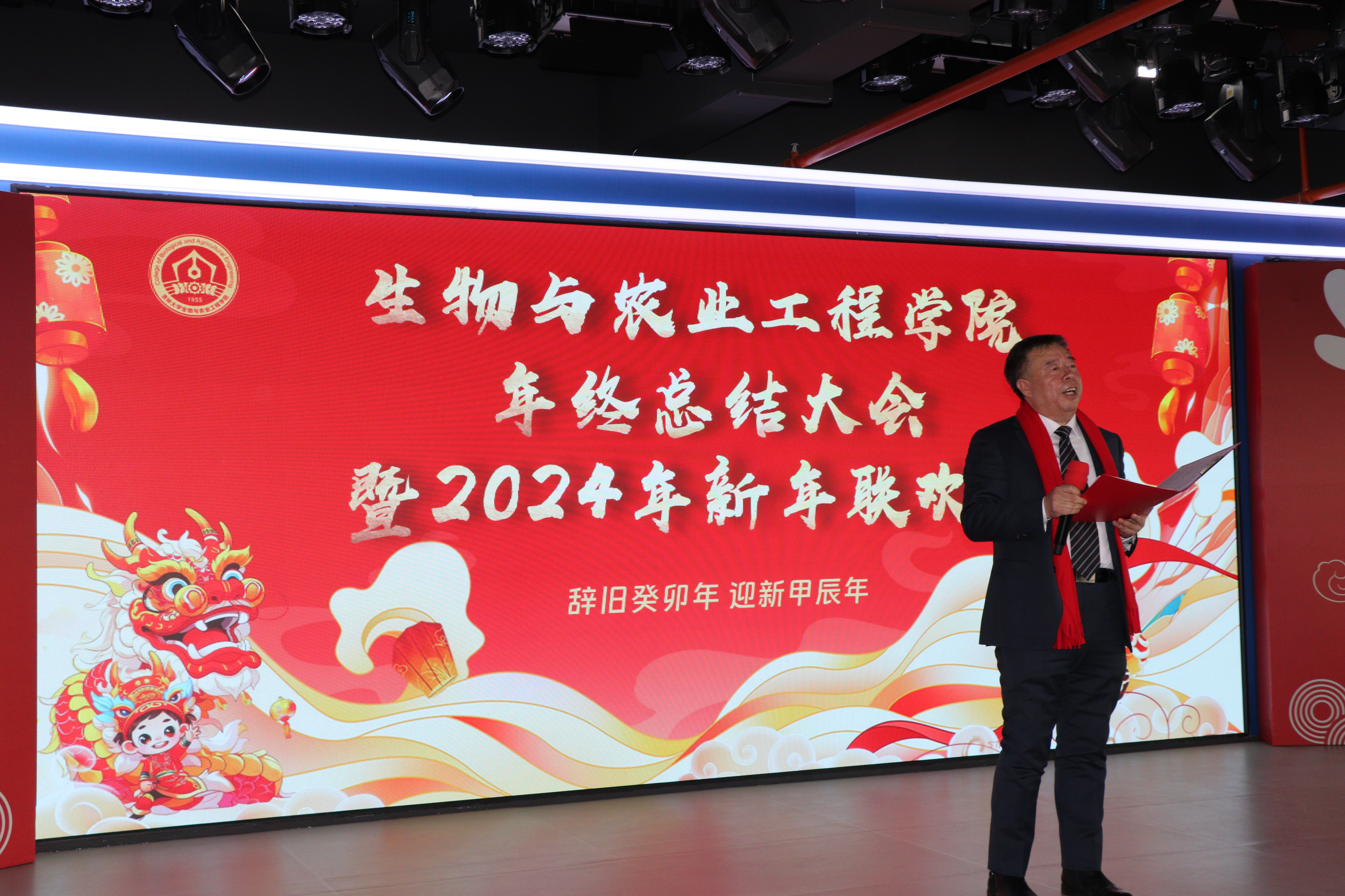 玉兔腾云辞岁去 金龙九霄报春来。1月12日,生物与农业工程学院在南岭校区工程训练中心成功举办年终总结大会暨2024年新年联欢会。