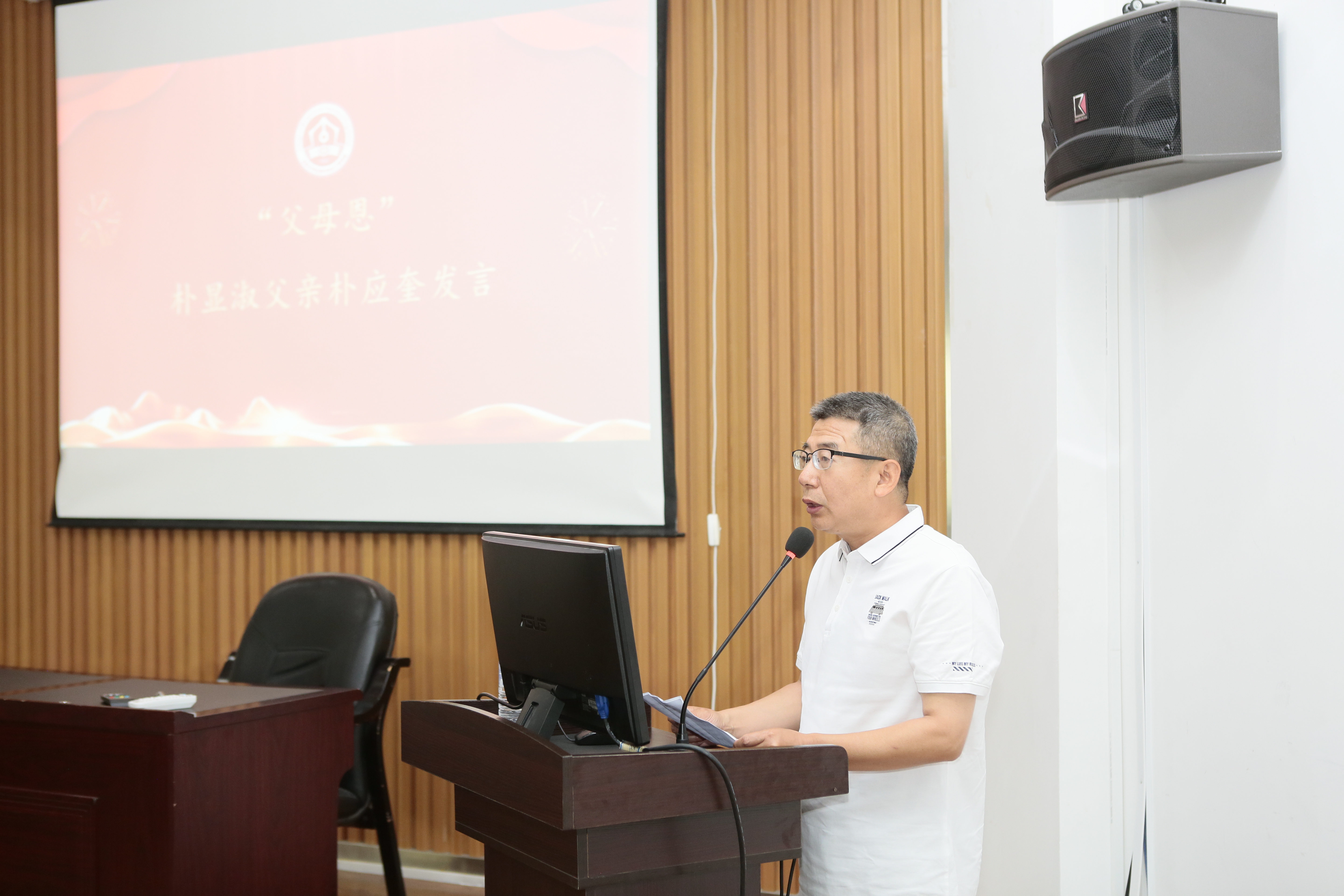 然后,毕业生朴显淑的父亲朴应奎作为家长代表发言,表达了对学校和老师们四年来辛勤付出的感谢,以及对学生未来前途的期许。