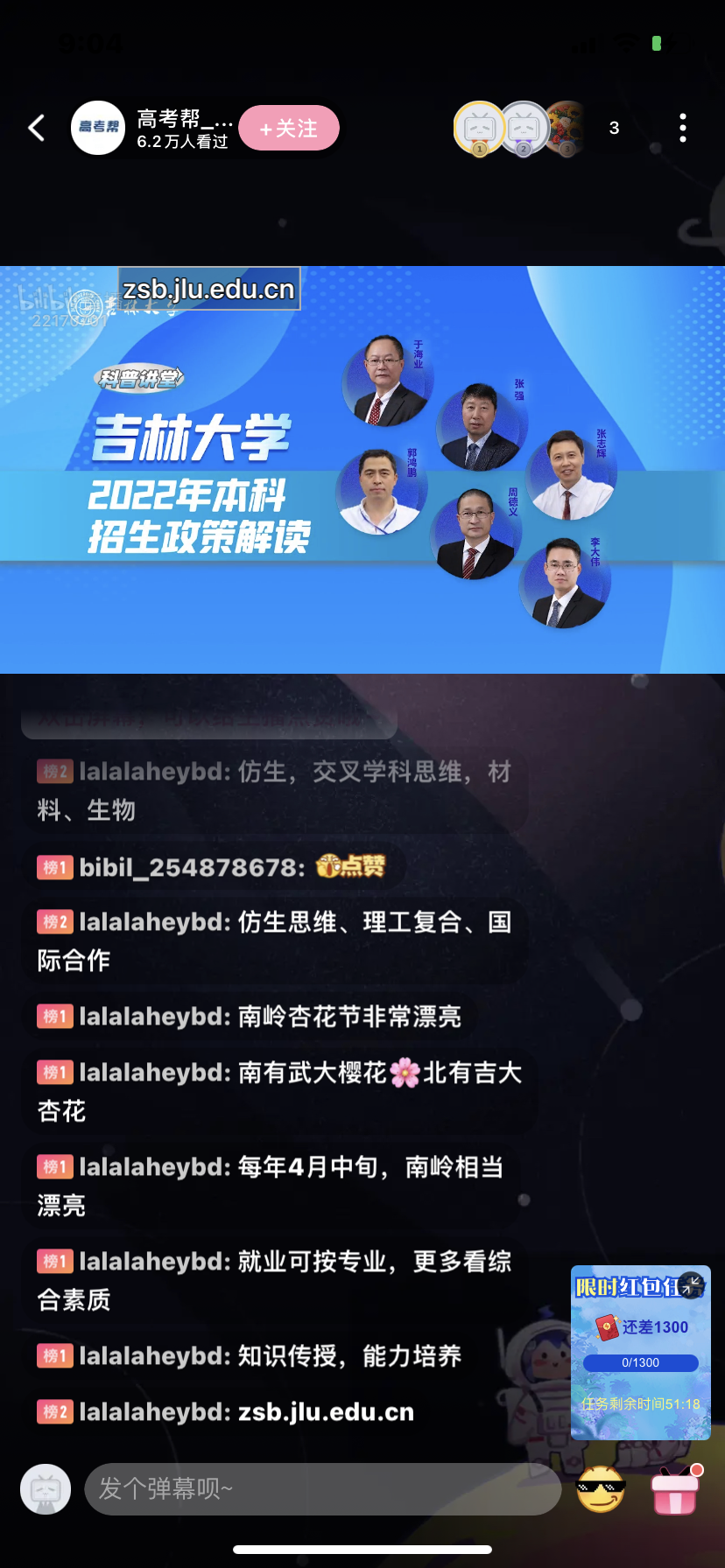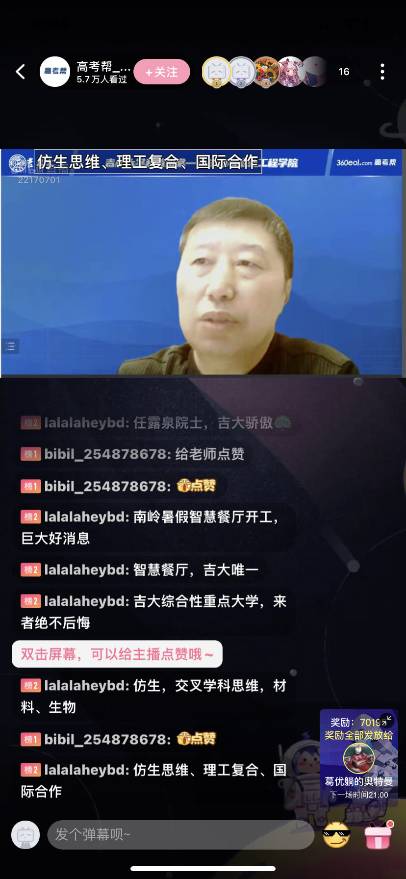 2022年高考在即,为了让广大考生和家长能够更好地了解beat365在线体育官网,同时有效提升学校的本科生源质量,生物与农业工程学院高度重视在疫情防控期间的本科招生宣传工作。5月27日晚上20:00,在学校本科招生办公室的组织下,学院通过高考帮和高招通两个平台向全国的考生和家长进行招生直播宣讲。院长于海业教授亲自担任主播,介绍学院的学科专业情况。学院本科教学副院长张强教授、工程仿生教育部重点实验室/主管研究生的副院长张志辉教授、农林经济管理系主任郭鸿鹏教授、农业工程系主任周德义副教授和副主任李大伟副教授登录直播间,热情、专业地为广大考生和家长答疑解惑。