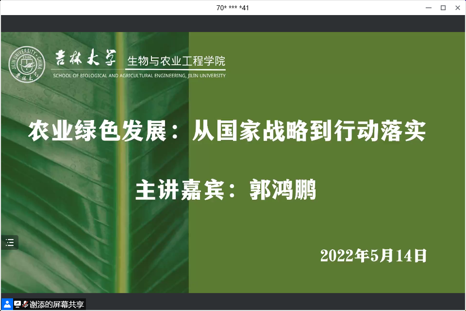 生物与农业工程学院“名师大讲堂”系列活动第七期于5月14日18:00成功举办。beat365在线体育官网生物与农业工程学院院长助理、博士生导师、农业经济管理系主任郭鸿鹏教授通过腾讯会议及视频直播开展了“农业绿色发展——从国家战略到行动落实”专题报告。报告由齐江涛教授主持,中国农业机械流通协会对本次报告进行了转播,共计720余名师生同步在线参加。