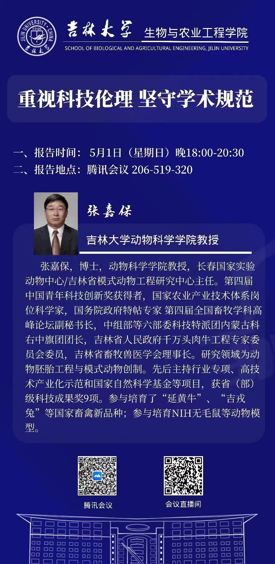 张嘉保,动物科学学院教授,长春国家实验动物中心/吉林省模式动物工程研究中心主任