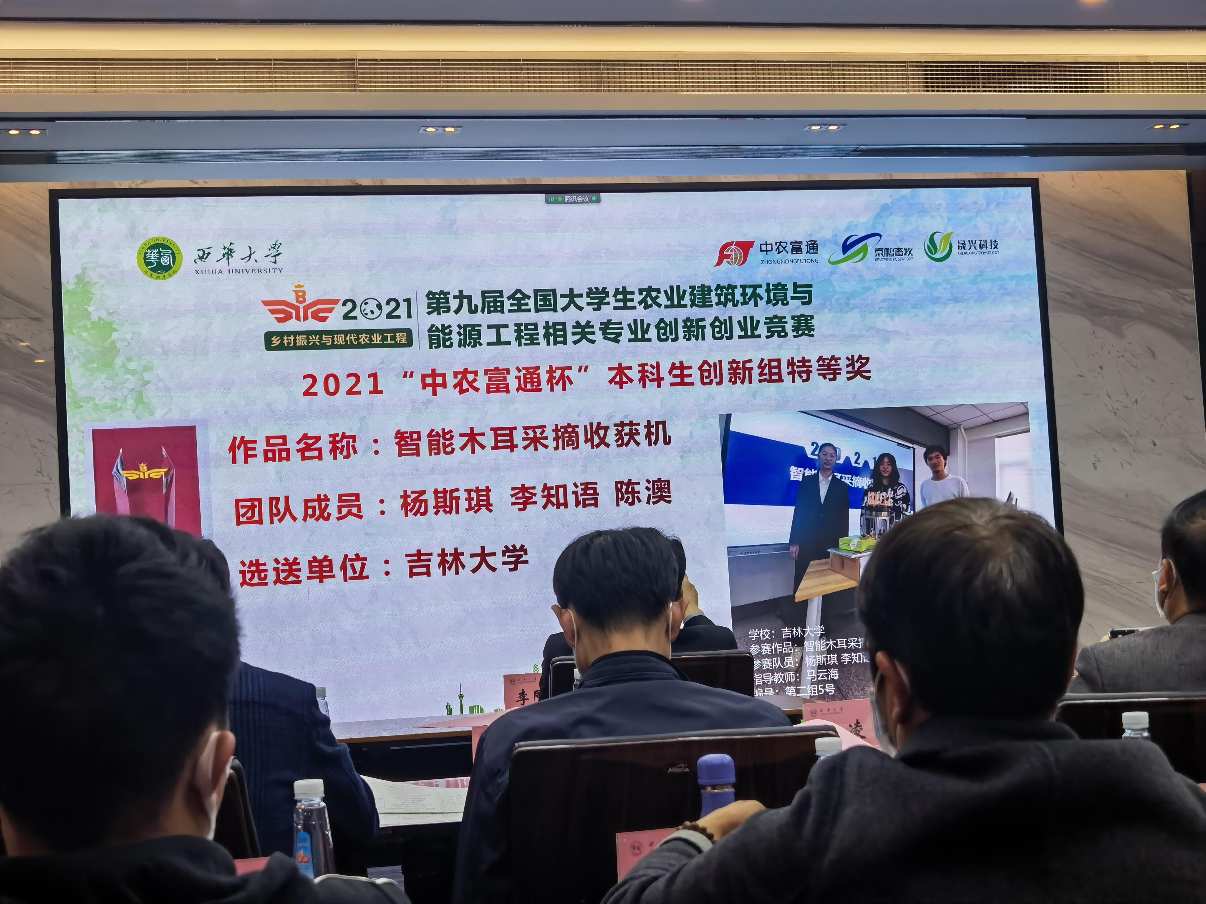 生物与农业工程学院共选派5支队伍代表beat365在线体育官网参加决赛,获得特等奖1项、一等奖1项、二等奖1项、三等奖2项,beat365在线体育官网荣获优秀组织单位奖,马云海教授获得优秀指导教师称号。其中由马云海老师指导,杨斯琪等三名同学参赛的“中农富通杯”本科生创新项目“智能木耳采摘收获机”获得特等奖;由陈廷坤老师指导,陈奕颖等四名同学参赛的“京鹏畜牧杯”研究生创新类指定项目“一种温室外主动防积冰仿花瓣形落水管”获得一等奖;由贺连彬老师指导,刘建安等四名同学参赛的“中农富通杯”本科生创新类指定项目“基于两点双绳索斜拉的高空悬吊饲喂装置”获得二等奖:由李大伟老师指导,刘玉萍等四位同学参赛的“京鹏畜牧杯”研究生创新项目“带沼气/沼液回流的自动多源搅拌式新型TPVR厌氧发酵系统”、由隋媛媛老师指导,李金权等四位同学参赛的“晟兴科技杯”本科生创业类项目“一种基于STM32的植物叶片水分测量仪”获得三等奖。