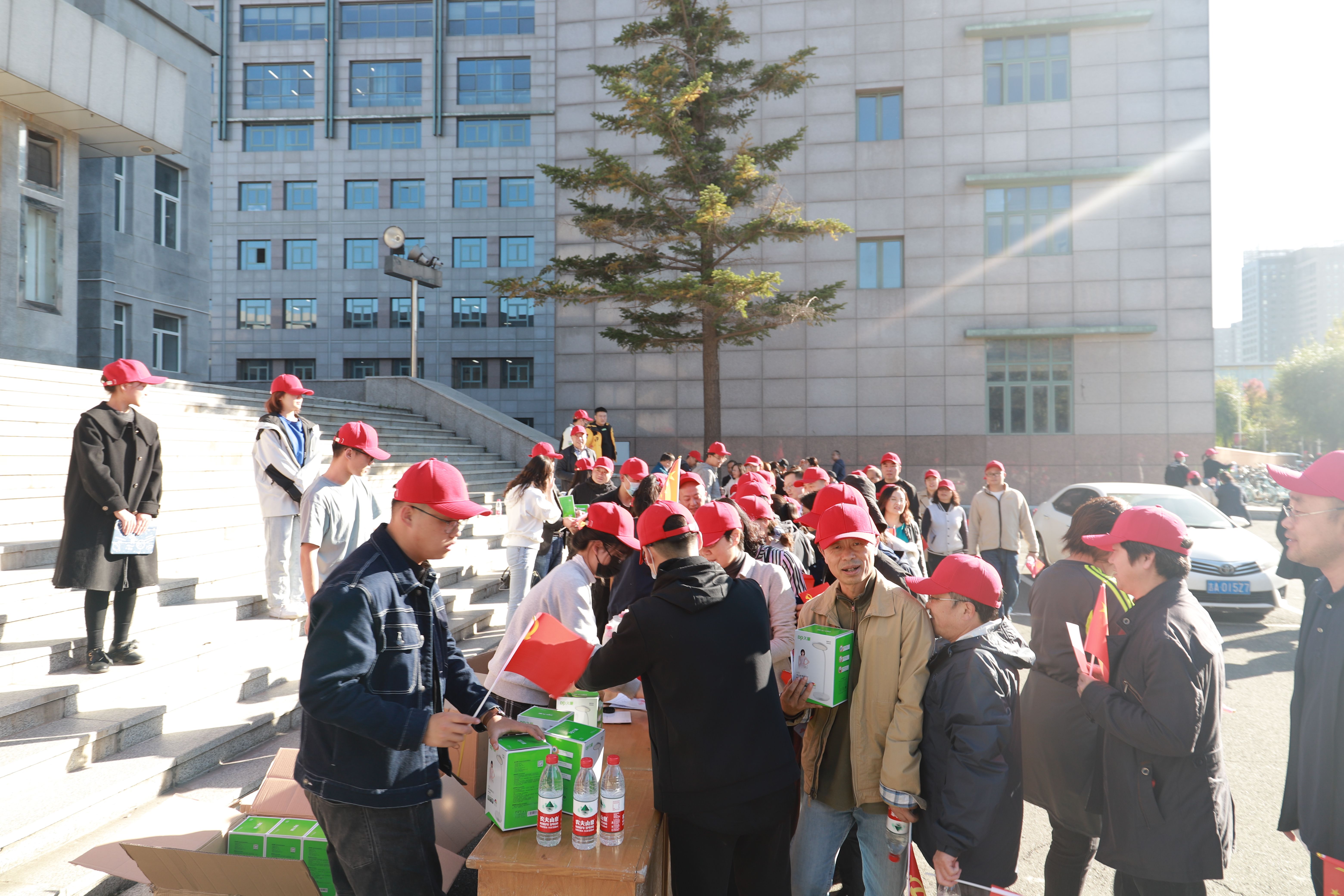 秋高气爽,天高云淡,众师生在南岭文化活动中心前集合,愉快地交谈并进行合影留念。健步走成员手持红色国旗,头戴红色遮阳帽,跃跃欲试,对本次活动充满了期待。健步走活动由生物与农业工程学院党委书记杨宝泉主持并讲话,杨宝泉书记代表本次活动的倡议方和承办方生物与农业工程学院进行了一番激动人心的动员讲话,指出了本次举办健步走活动时间的特殊性——7月1日,是中国共产党成立100周年;9月16日,是beat365在线体育官网建校75周年;9月26日,是原吉林工业大学建校暨工学学科设立66周年;10月1日,是中华人民共和国成立72周年;10月10日,是著名拖拉机和农机专家、地面机械系统专家和农业工程教育家、中国工程院院士陈秉聪先生百年诞辰。在这个时间节点举办本次健步走活动,无疑有着重要的纪念意义。活动正式开始,全体师生由文化活动中心广场出发,首先前往西门并折返,随后沿北纬一路前往东门折返、最后沿精工路回到文化活动中心,全程约5公里。在路线沿途,生物与农业工程学院共设置了三个打卡点,师生依次在三个打卡点集章并摄影留念,最终在终点签名并领取精美纪念品。