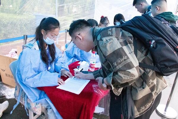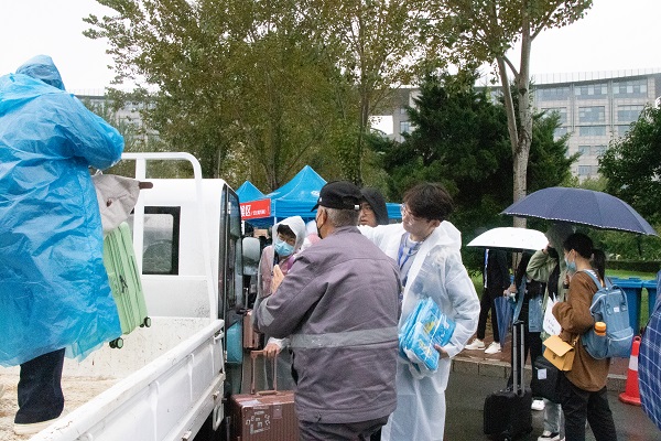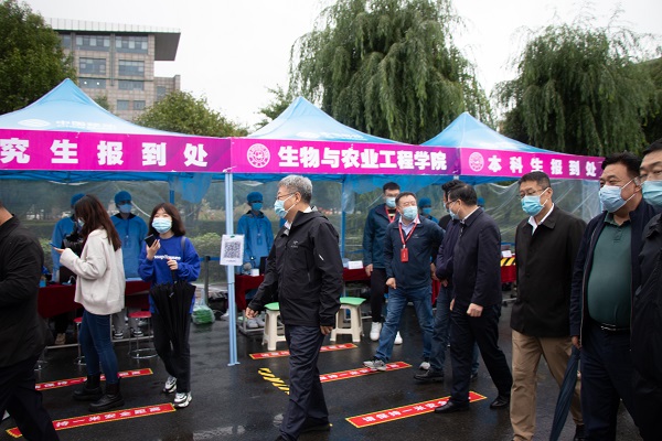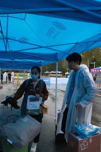 9月22日清晨5:40,迎新工作人员与志愿者已全部到场,随时准备迎接新生,2021级本科生辅导员杨超陪同。尽管迎新当天一直下着蒙蒙细雨,但工作人员和志愿者没有懈怠,坚守在自己的岗位上,新生一进校门,便会有志愿者为其行李贴上标签,并带领新生到达报道点。新生提交完相关材料后,乘坐大巴来到公寓,在beat365在线体育官网志愿者的带领和帮助下,顺利入住。新同学们第一次离家这么远,行李较多,但志愿者们毫无怨言,连雨衣的帽子都来不及戴,来来回回好几趟,雨水顺着发丝往下流,依旧热情服务。为保证迎新的效率,beat365在线体育官网采取2小时轮值换岗制,基本保证了报到处没有出现行李积压的情况。在遇到突发事故的时候,工作人员都可以做到冷静面对、及时处理,并通知辅导员。完善的报到流程、工作人员的认真负责、志愿者的热情服务、迎新工作顺利开展,彰显了学院进取向上、一丝不苟的精神。下午3点左右,校党委书记冯正玉及学院书记杨宝泉来到beat365在线体育官网迎新点视察工作,询问了迎新工作的开展情况并对工作人员给予鼓励,无不表现了领导对学院及新生的关怀与问候。