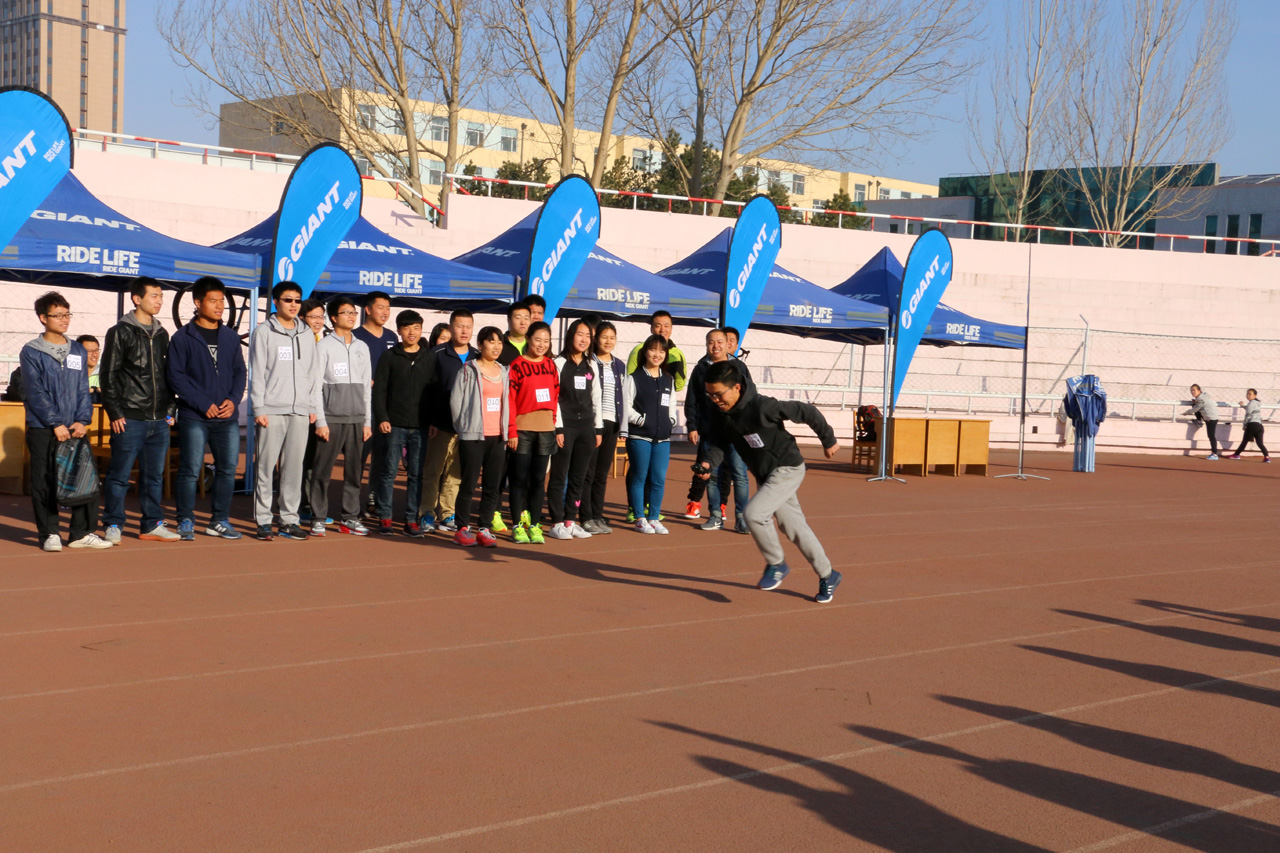 经过一周的活动宣传和前期准备工作,周日当天场地布置完毕后,南岭校区各学院的报名同学在工作人员的带领下有序进场等候。在负责人的一声令下,负责人之一的张凯强同学率先开始了漫长的挑战之旅。随着时间的推移,越来越多的同学来到活动的现场,共同见证着这历史性的一刻。活动场地专门设置了游戏区域,为尚未参赛的同学提供了良好的等待环境。活动期间,不少晨练者被现场热闹的气氛所吸引,纷纷主动加入了挑战的队伍。甚至还有刚刚上小学的小朋友,在父亲的陪同下也圆满完成了任务。下午1点10分,全部报名选手接力完毕,最后一棒交由全体工作人员共同完成。随着计程表上的数字跳到“100公里”,本次挑战正式宣告成功!