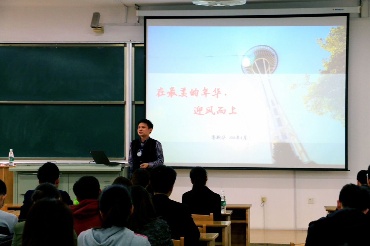 关于青年人的成长与发展,鲁新华校友就成长与职业两大主题分享了自己的看法和建议,指出成长的本质在于不断的学习和思考,以及年轻人在择业过程中应该思考的问题。最终,他以幸福的定义为结尾,结束了这次精彩的演讲。在最后的提问环节中,同学们纷纷踊跃发言,向校友提出了自己希望了解的问题。讲座结束后,仍有几位同学将校友团团围住,进行一些交流和探讨。面对同学们的提问,鲁新华校友一一耐心解答,同学们从中得到了很大的启迪和收获。