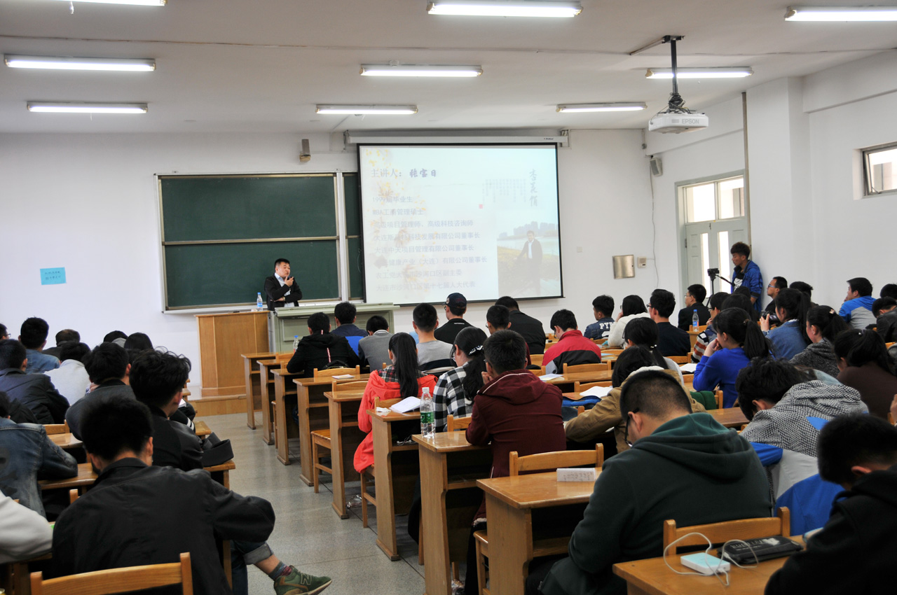 在大家热情的掌声中,张宝日师兄开始了今天的讲座。师兄从他的大学生活谈起,因为怀揣创业梦,师兄在不影响学业的前提下,大学期间做了许多兼职,并学习他感兴趣的知识。师兄鼓励大家去创新创业,每天学习一些前沿知识,关注新闻热点,同时,也要在大学期间培养自己的经济意识,为今后的发展打下良好的基础。而后,张宝日师兄同大家分享了与人相处的宝贵经验,以及告诉同学们如何去寻找宝贵的资源,在校大学生可以参与到老师的科研项目中,或者找学长学姐帮忙,工作的同学可以参加到所在城市的校友会。之后,张宝日师兄用风趣幽默的语言向同学们讲述了如何寻找人生另一半。同学们被师兄的演讲深深吸引,此次讲座解决了大部分同学的疑惑。提问环节,同学们积极向师兄提问,师兄给大家指点迷津。最后,曲书记为此次讲座做了详细的总结,告诉大家要有创新性思维,生活中,要不断地学习如何更好地与人沟通,善于发现资源、利用资源,具备行政意识,在大学期间更要不断地学习,接触新的事物、知识,为今后迈入工作岗位打下夯实的基础。