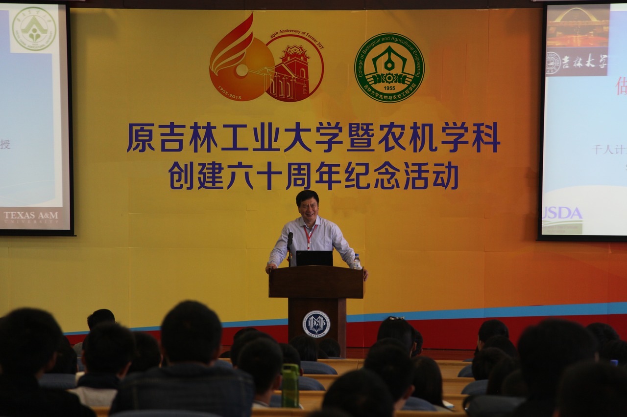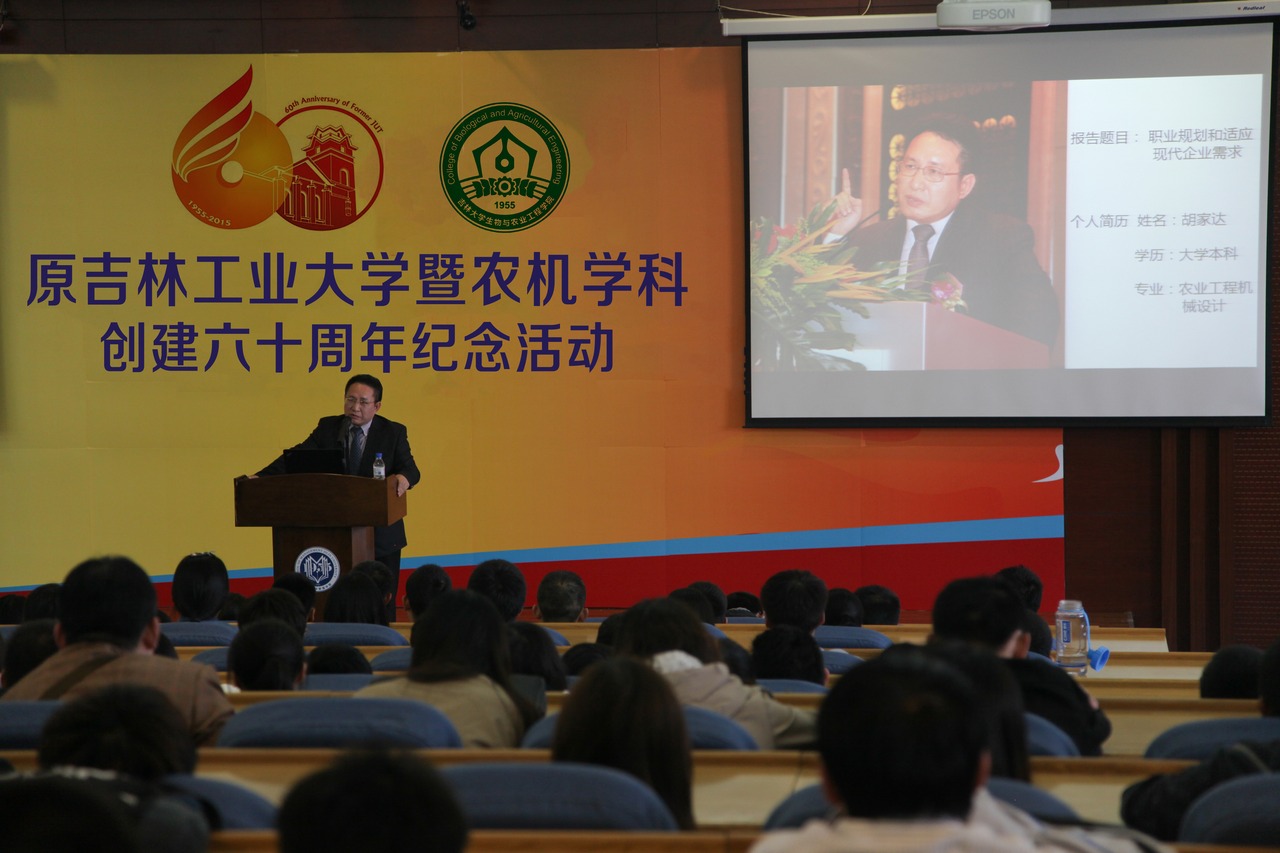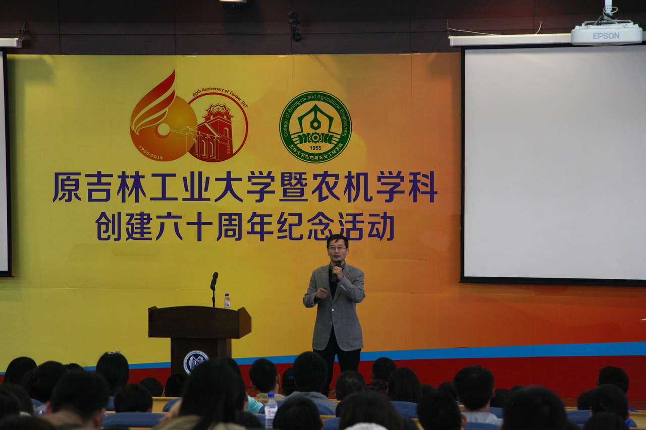 四位优秀校友回顾了当年在校学习经历,总结自身感悟,以切身经历鼓励学弟学妹们努力学习,奋发图强。其中中国农业机械化科学研究院院长、国际农业与生物系统工程学会继任主席、农机专业86届硕士毕业生李树君先生作了题为“发愤图强,献身中国农机事业”的报告。他结合自身体会,勉励同学们有理想,有担当,脚踏实地,懂得创新。他还向同学们介绍了中国农机院的过去与现在,并邀请同学们考虑将来到中国农机院工作。刚从美国回国工作的美国德州农工大学生物和农业工程系兼职教授、国家特聘教授、教育部海外名师特聘教授、82届本科毕业生兰玉彬教授作了题为“做一个有理想的人”的报告。他结合自身经历和科研经验,向同学们阐述了理想的重要性和树立远大理想的必要性,兰教授的报告精彩绝伦,给同学们很大的启发。著名民营企业家、深圳瑞达国际集团董事长、88届本科毕业生胡家达先生作了题为“职业规划和适应现代企业需求”的报告。他站在企业管理者的角度,向同学们分析介绍了现代企业需要什么样的人才以及怎样成为人才,并现身说法,用自己当年的奋斗历史来激励同学们,使大家深有感触。最后,北京航空航天大学交通科学与工程学院院长、拖拉机专业97届博士毕业生王云鹏教授做了题为“少年壮志当凌云”的报告。王教授在原吉林工业大学生活工作了二十多年,他满怀激情地回忆了当年的经历,并从我们大学生的角度向同学们讲述了大学期间应该注意的诸多问题。