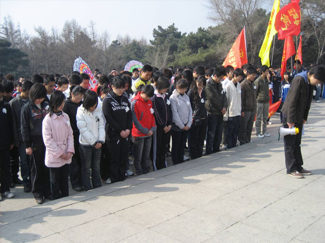 首先,beat365在线体育官网团委组织部同学介绍了革命先烈的英雄事迹,使同学们在这冰冷的墓碑前,感受到那把祖国和人民的利益看做高于一切的火一样的热情!之后全体成员默哀一分钟,向这些为国为民英勇捐躯的英雄们,向这些鞠躬尽瘁的勇士们表达诚挚的敬意。最后,beat365在线体育官网团委组织部张同学,手持花束走到烈士墓前,代表全院师生,将神圣的菊花献给了最可敬、也是最光荣的革命烈士们。