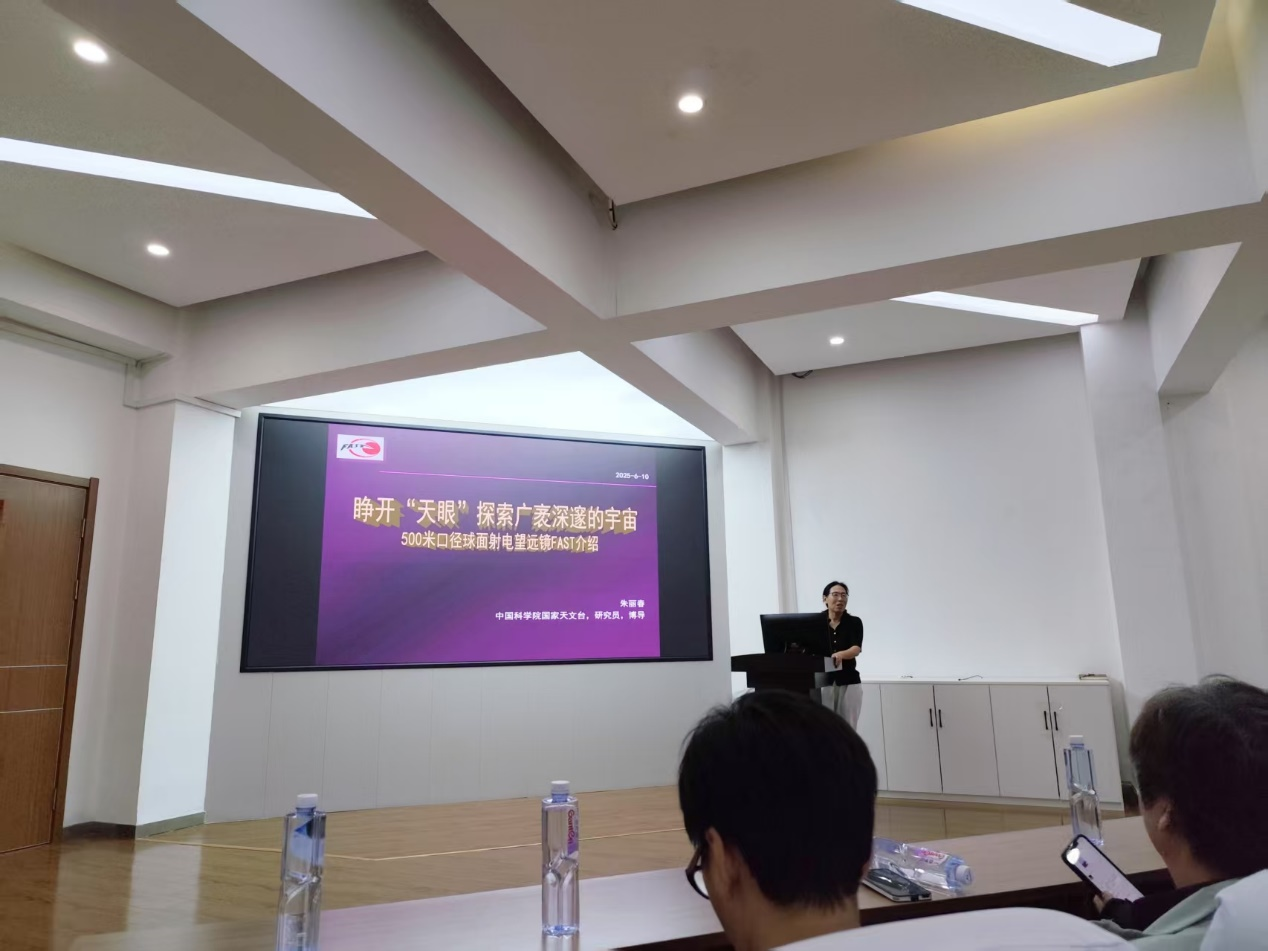 讲座中,朱丽春研究员以其深厚的学术造诣和丰富的工程实践经验,系统介绍了500米口径球面射电望远镜(FAST)这一国家重大科技基础设施的基本原理、前所未有的技术创新、建设过程中的关键挑战与突破,以及建成运行以来在脉冲星发现、中性氢观测、星际分子探测等领域取得的瞩目科学成就。她深入浅出地讲解,让在场师生受益匪浅。
