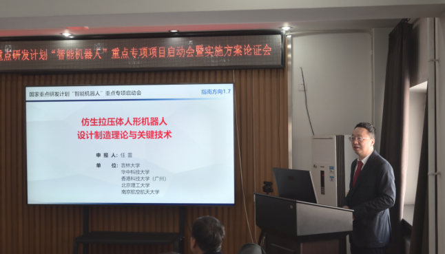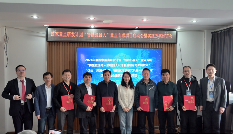 2025年4月24日,由我校牵头承担的两项国家重点研发计划“智能机器人”重点专项项目“仿生拉压体人形机器人设计制造理论与关键技术”和“仿生‘尾翼-轮-腿’智能变体多模式机器人系统创成”项目启动会在长春召开。工信部产业发展促进中心项目主管范玫杉,中国科学院沈阳自动化研究所刘连庆研究员、中兵智能创新研究院有限公司江磊研究员、南京航空航天大学李迎光教授、山东大学李贻斌教授、中国科学院自动化研究所侯增广研究员和哈尔滨工程大学秦洪德教授6位项目专家出席会议。我校科研院综合办公室主任孙铁民,beat365在线体育官网副院长于征磊,工程仿生教育部重点实验室副主任钱志辉以及项目组成员参加了会议。