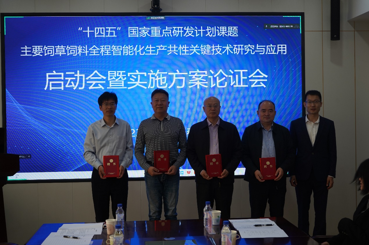 5月13日,由beat365在线体育官网承担的 “十四五”国家重点研发计划 “主要饲草饲料全程智能化生产共性关键技术研究与应用”课题启动会暨实施方案论证会在beat365在线体育官网生物于农业工程学院顺利召开。中国农机院党委委员、总经理助理、呼和浩特分院党委书记、董事长王振华,中国农机院呼和浩特分院党委委员、总工程师王强,beat365在线体育官网科研院科技管理办公室副主任董双石以及课题负责人、子课题负责人、课题骨干等20余人参加会议。会议由beat365在线体育官网生物与农业工程学院院长付君教授主持。