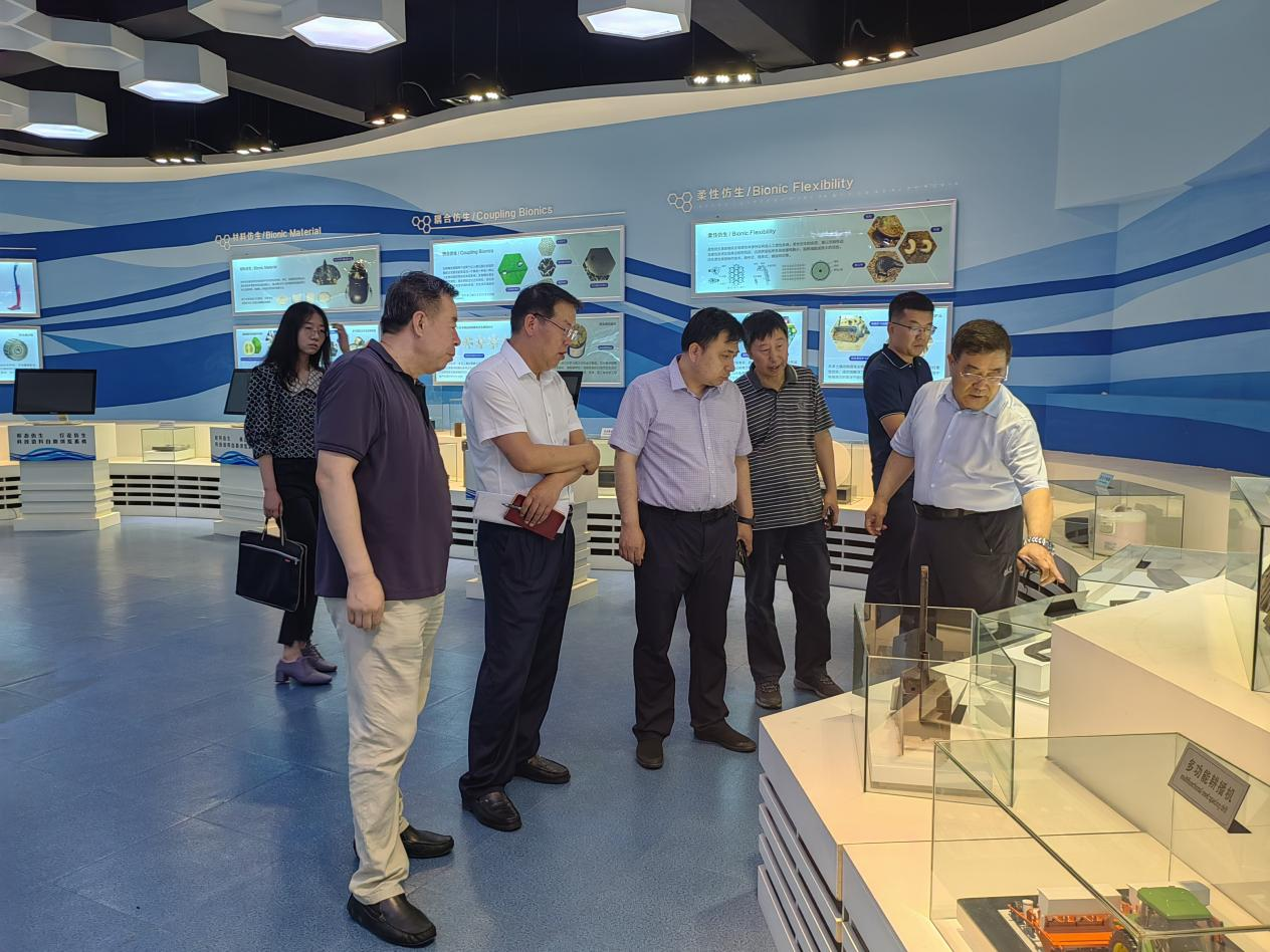 为深入贯彻落实景俊海书记、韩福春副省长在《决策咨询要报》(第15期)《以仿生科技为突破口,推动科技成果就地转化——关于促进我省农机装备产业升级的政策建议》上的批示精神,进一步加快我省农机产业发展,推动农业科技成果就地转化,促进农机装备水平全面提升,7月11日,吉林省农业农村厅副厅长马宏山带队参访了生物与农业工程学院工程仿生教育部重点实验室及农业工程实验室,就农机装备产业发展及科技创新情况开展调研。生物与农业工程学院党委书记杨宝泉、院长付君、副院长张强等陪同调研。