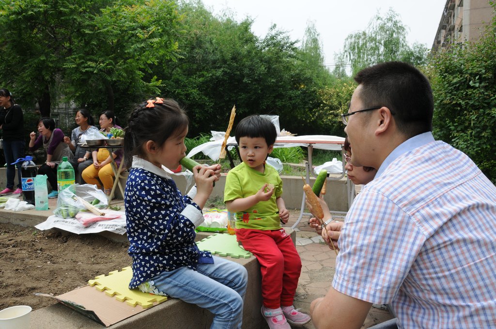 低垂的翠柳用细细的叶子给各种叫不出名字的花呀、草呀的扇风,活动在轻松自然的氛围中进行。没有限定严格的时间,也不拘束于固定的主题,大家陆续来到绿柳成荫的小区中间,围在花坛边谈吃谈学谈家庭,谈的开心和自然。教学、科研过程中的紧张和侍奉老人、照顾孩子的疲惫,在童言无忌中散去,大家的脸上都洋溢着温馨、幸福的笑容,放松了心情,缓解了压力。