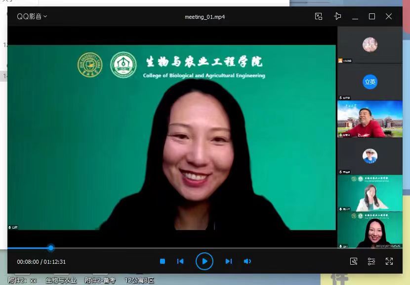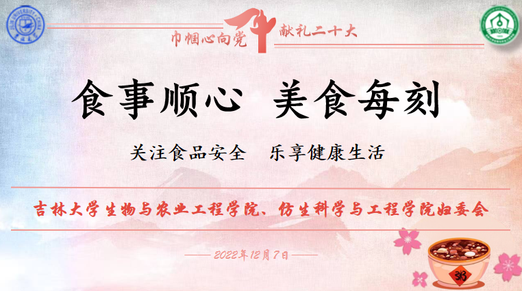 为以巾帼之心向党的二十大献礼,号召学院女性职工关注食品安全,乐享健康幸福的家庭生活,2022年12月7日下午1时30分,由生物与农业工程学院、仿生科学与工程学院妇委会举办的“妇女小家,一家一品”创新活动之“食事顺心,美食每刻”主题讲座于线上举行。学院党委书记杨宝泉、原党委书记兼院长杨印生、全体女性职工及部分男老师和外校外地的老师们参与此次分享会。