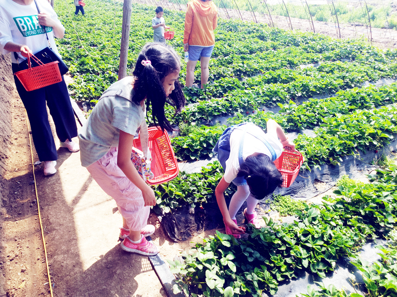 适逢六一儿童节,10名儿童也跟随父母出行。炎热的天气、陌生的叔叔伯伯阿姨姐姐,都抑制不住兴奋的孩子们,他们嚷着跑进了草莓园,吃着、玩着,还跑出了大棚自行观光……不仅孩子们嗨起来了,退休的督学们也都放松了心情,和大家一起在园子里溜达。年轻的女教工们,也享受到了办公室、教室中找不到的快乐,她们拍孩子、拍奶爸、拍辣妈、拍草莓,当然最重要的还是自拍……因为她们毕竟是孩子们的姐姐。