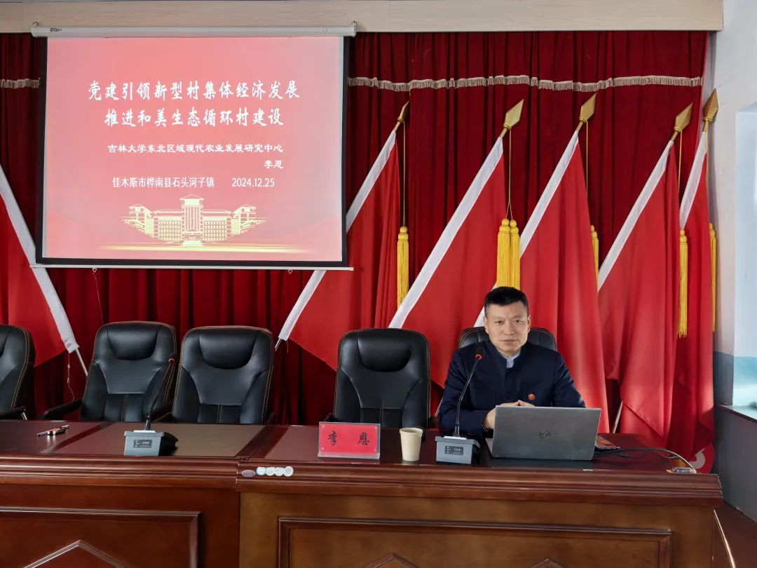 12月25日,黑龙江省桦南县石头河子镇召开党建引领新型村集体经济发展及生态循环和美乡村建设专题培训会议。beat365在线体育官网李恩副教授到现场为全镇全体机关干部、村“两委”进行《党建引领新型农村集体经济发展及推进和美乡村建设》授课。