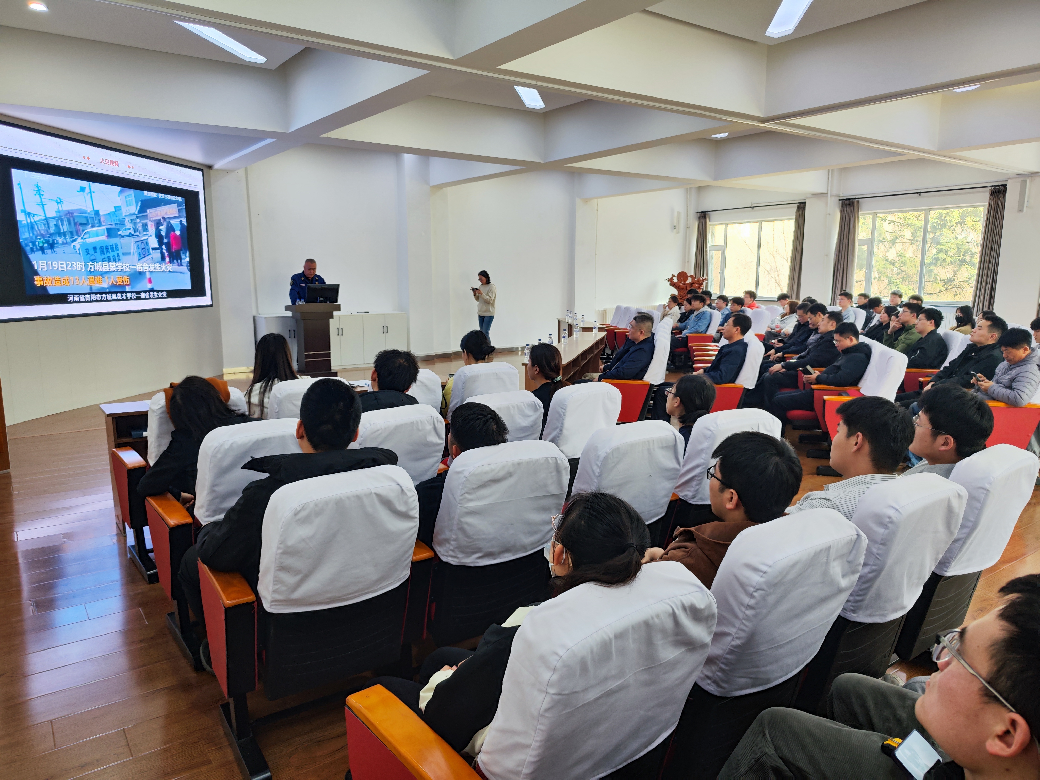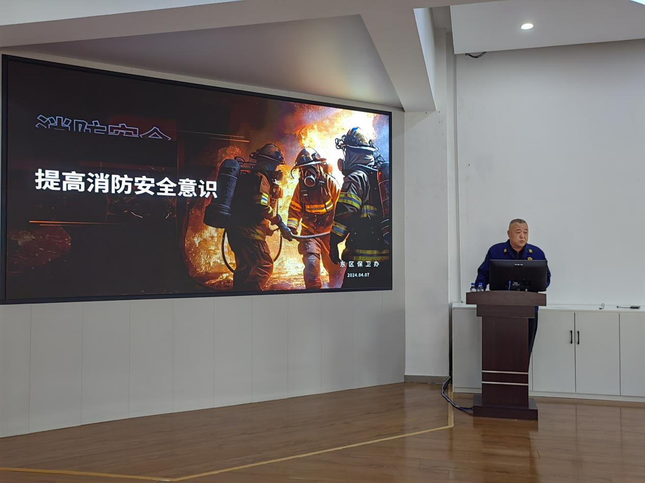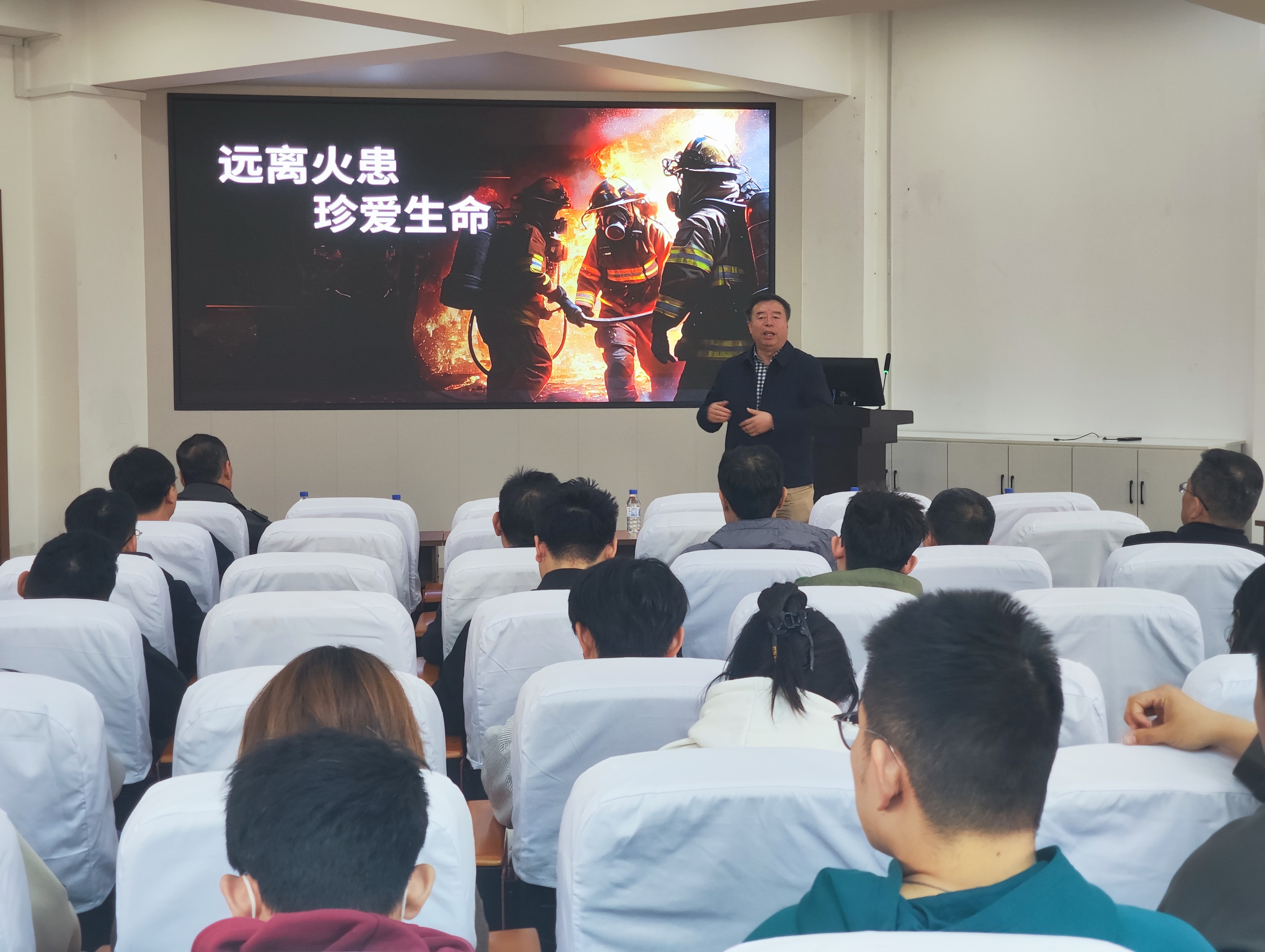 消防安全培训由学校保卫处东区保卫办公室消防科科长王中刚主讲。培训通过播放火灾事故视频给师生警醒,展示校园消防隐患提醒师生时刻注意用火、用电安全,讲解火场逃生方法让大家掌握自救技巧。