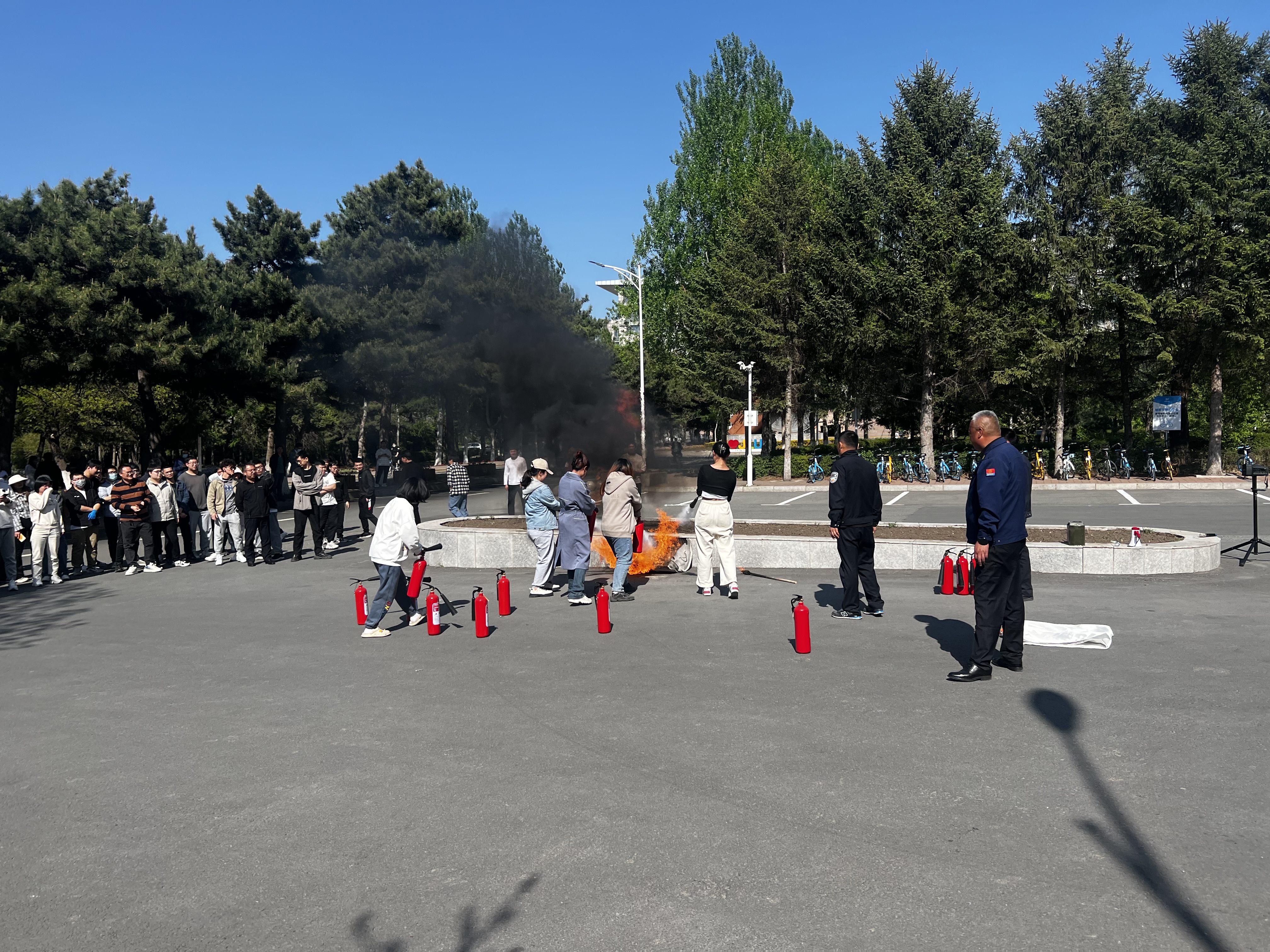 为进一步加强学院消防安全工作,防范火灾隐患,营造安全、稳定、和谐的校园环境, 5月10日 下午,生物与农业工程学院与东区保卫办公室联合组织了消防安全教育暨疏散灭火演练活动。在东区保卫办消防科的具体指导下,两场大型演练活动分别在农机交通馆、仿生楼门前进行。