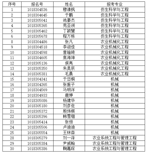 经生物与农业工程学院 “申请考核制”招生资格审核小组对考生申请材料的审核评估,确定以下名单中考生进入综合考核环节,现公布如下: