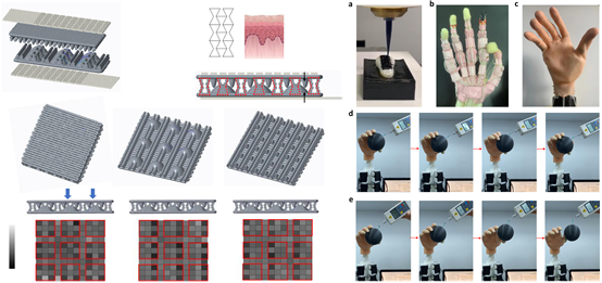 模拟生物触觉感知的结构、排布和神经感知方式,采用3D打印工艺和柔性感知材料,研究空间复杂仿生结构设计的多模态感知性能,设计高性能多模态柔性感知系统。