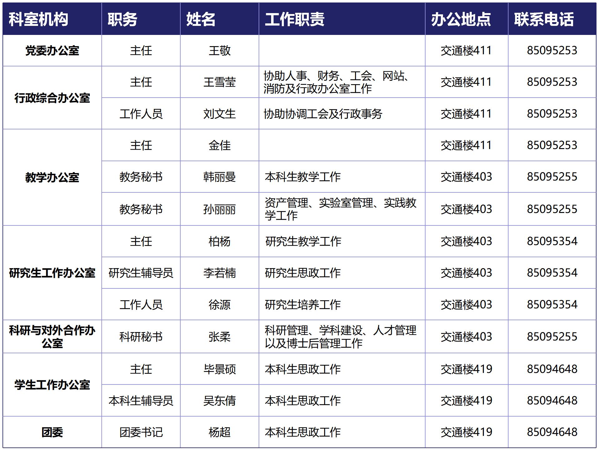各系行政班子成员