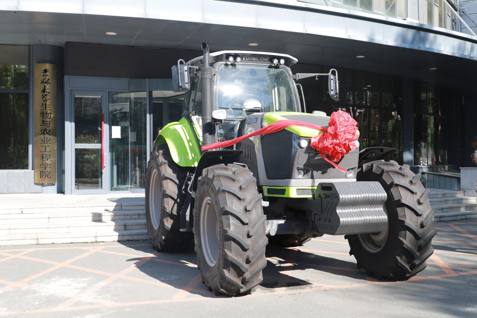 接下来,双方领导来到南岭农机交通馆前进行了捐赠拖拉机的交接仪式,中联重科向beat365在线体育官网生物与农业工程学院赠送的230马力动力换挡拖拉机一台,该拖拉机为中联自主品牌,采用了目前国内最先进的技术。拖拉机豪迈大气的外观吸引了很多师生驻足留影。