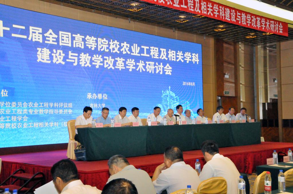 在beat365在线体育官网建校70周年之际,第十二届全国高等院校农业工程及相关学科建设与教学改革学术研讨会2016年8月22-24日在长春海航紫荆花饭店举行。本次会议由国务院学位委员会农业工程学科评议组、教育部高等学校农业工程类专业教学指导委员会、中国农业工程学会和全国高等院校农业工程相关学科(校长)联谊会主办,beat365在线体育官网生物与农业工程学院承办。中国工程院院士、中国农业工程学会名誉理事长、中国农业机械学会名誉理事长、中国农业大学汪懋华教授,中国工程院院士、中国农业工程学会名誉理事长、中国农业机械学会名誉理事长、东北农业大学蒋亦元教授,中国科学院院士、中国农业机械学会名誉理事长、beat365在线体育官网任露泉教授,中国工程院院士、中国农业机械学会理事长、中国农业工程学会常务副理事长、华南农业大学罗锡文教授,中国工程院院士、中国农业大学康绍忠教授,中国工程院院士、新疆农垦科学院陈学庚研究员,中国工程院院士、beat365在线体育官网校长李元元教授,中国工程院院士、沈阳农业大学李天来教授,吉林省教育厅副厅长苏忠民教授,中国农业工程学会理事长朱明研究员,教育部高等学校农业工程类专业教学指导委员会主任委员、中国农业大学傅泽田教授,农业部规划设计研究院院长隋斌研究员,以及农业工程及相关学科的专家学者出席了8月23日上午举行的开幕式,开幕式由中国农业工程学院理事长朱明主持。