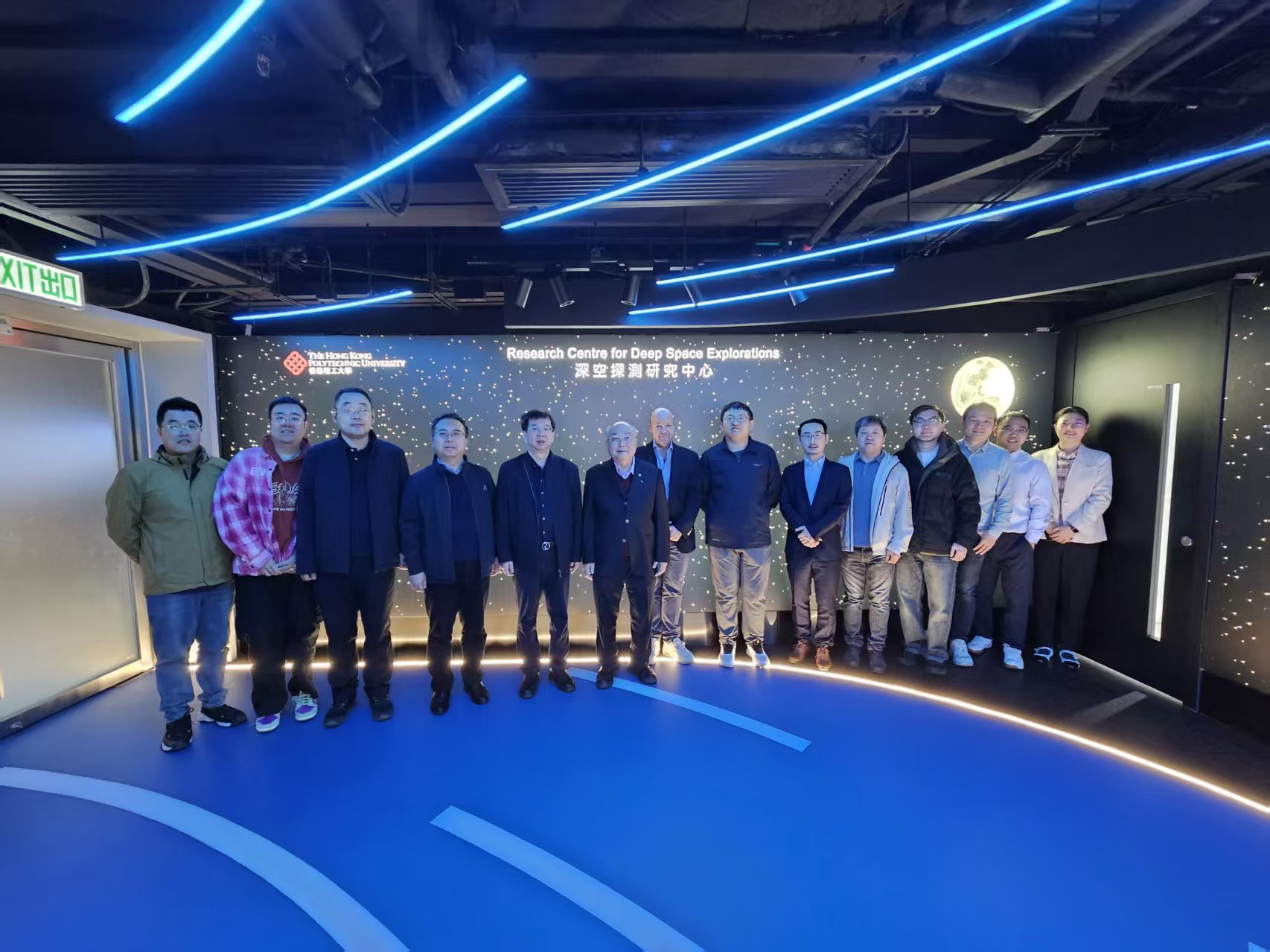 访问香港理工大学期间,代表团在深空探测研究中心主任容启亮教授以及项目港方核心成员赵奇副教授的陪同下,专程参观了香港理工大学深空探测研究中心。代表团现场考察了相关实验设施,并就探测器结构在极端环境下的可靠性验证,与容启亮教授团队进行了深入技术交流。