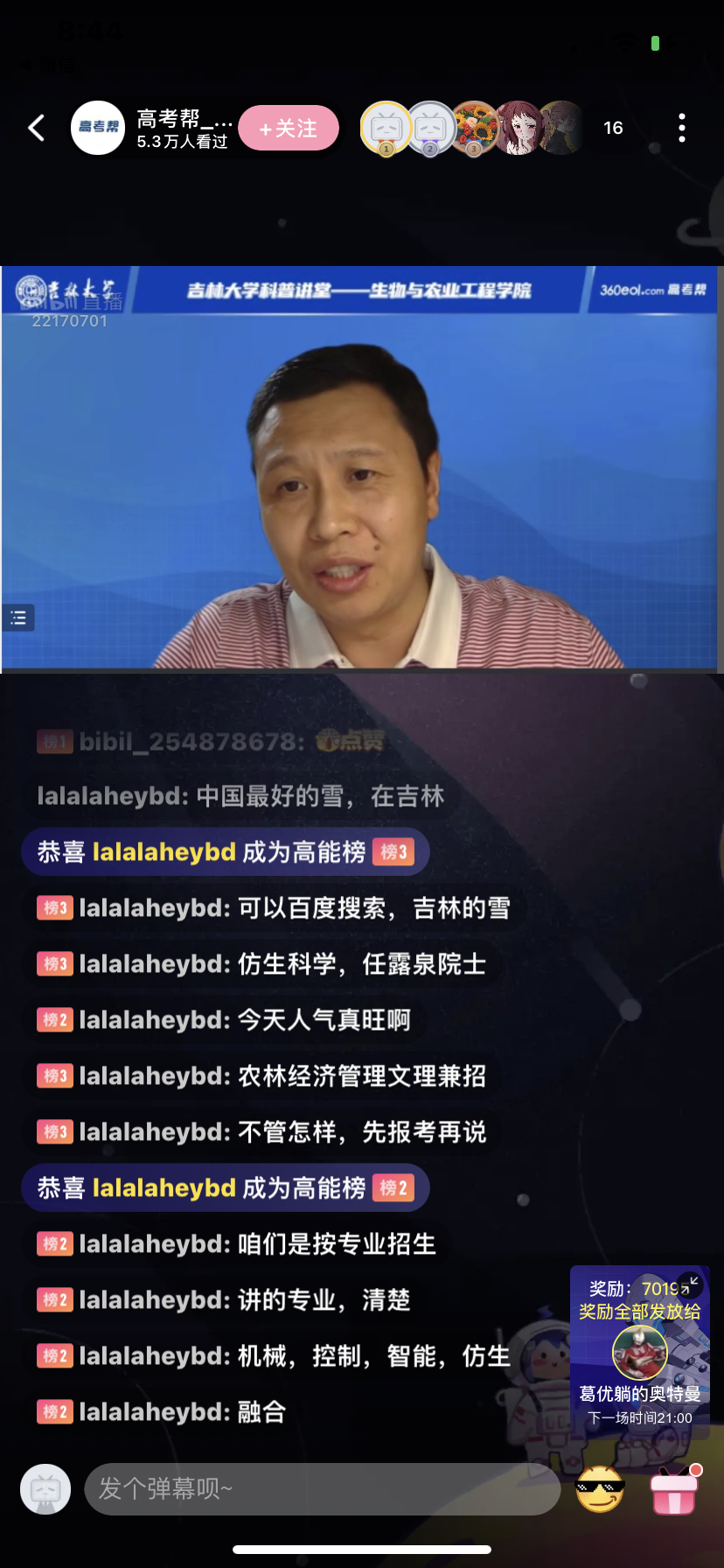 2022年高考在即,为了让广大考生和家长能够更好地了解beat365在线体育官网,同时有效提升学校的本科生源质量,生物与农业工程学院高度重视在疫情防控期间的本科招生宣传工作。5月27日晚上20:00,在学校本科招生办公室的组织下,学院通过高考帮和高招通两个平台向全国的考生和家长进行招生直播宣讲。院长于海业教授亲自担任主播,介绍学院的学科专业情况。学院本科教学副院长张强教授、工程仿生教育部重点实验室/主管研究生的副院长张志辉教授、农林经济管理系主任郭鸿鹏教授、农业工程系主任周德义副教授和副主任李大伟副教授登录直播间,热情、专业地为广大考生和家长答疑解惑。
