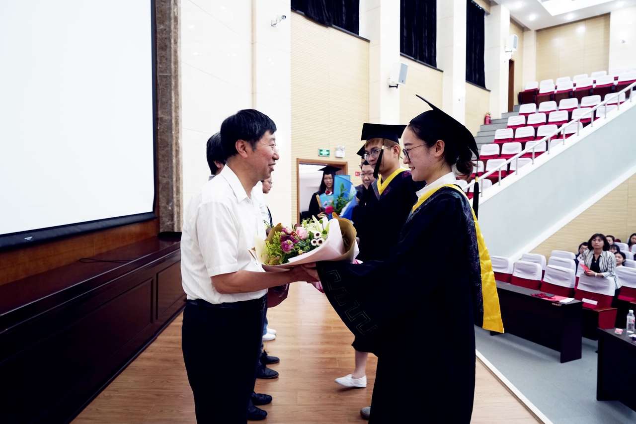 然后,学位评定分委员会副主席、长白山学者特聘教授、博士生导师马云海身着导师袍,为同学们一一颁发毕业证书、授予学位并合影留念。同学们或在摄影师的指挥下用力睁大那双水汪汪的小眼睛,或调皮地抱抱,或帮导师整理流苏,或流露出一丝腼腆与紧张,都为这一温馨的环节平添了不少趣味。
