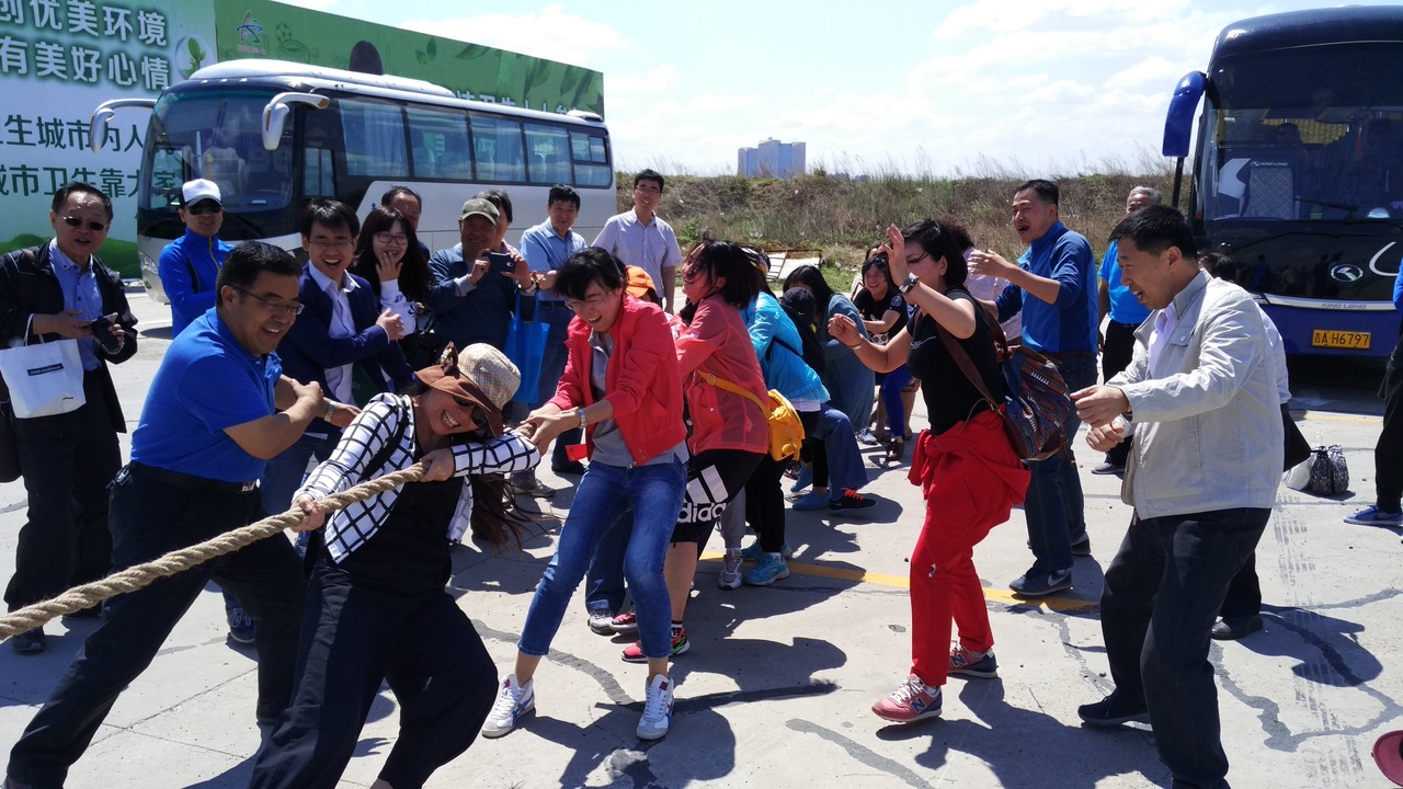 到达北湖湿地公园后,教工们首先以拔河作为徒步之前的热身活动。拔河分为仿生队和学院队,分男女两场进行比赛。在第一轮的女子较量中,仿生队后来居上,凭借整齐的口号和男教工的“友情赞助”,率先拿下一分。紧接着学院男队在杨印生院长的带领下重振士气,以饱满的精神和团结的力量为学院队扳回一分,拔河比赛以1:1握手言和。