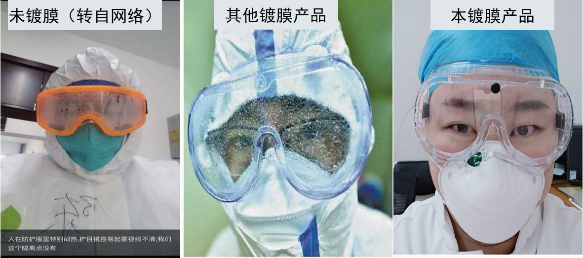 在疫情初期,医护人员持续接诊大量患者后发现,传统护目镜雾化严重,给诊疗和医治工作带来了极大不便。为解决易雾化、易交叉感染的难题,赵杰教授团队受水生植物叶脉快速吸水而无露珠驻留的现象启发,研发了仿生防雾护目镜,该护目镜利用亲-疏水材料单元半贯穿聚合物网络表面技术,具备结构稳定、制备工艺可控、防雾化效果好、生物安全性高等优势,为抗疫工作安全、便捷、高效的进行提供了保证,实现了资源效益的最大化。