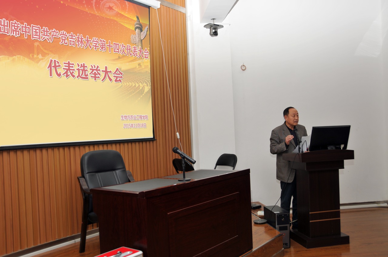 院党委书记吕子珍同志介绍了生物与农业工程学院出席学校第十四次党代会代表推选工作情况,宣读了学校党委《关于同意生物与农业工程学院党委报来的生物与农业工程学学院出席中国共产党beat365在线体育官网第十四次代表大会代表候选人预备人选的批复》同时介绍了代表候选人预备人选情况。经全体与会人员表决,通过了《生物与农业工程学院党委出席中国共产党beat365在线体育官网第十四次代表大会代表选举办法》和监票人、计票人名单。