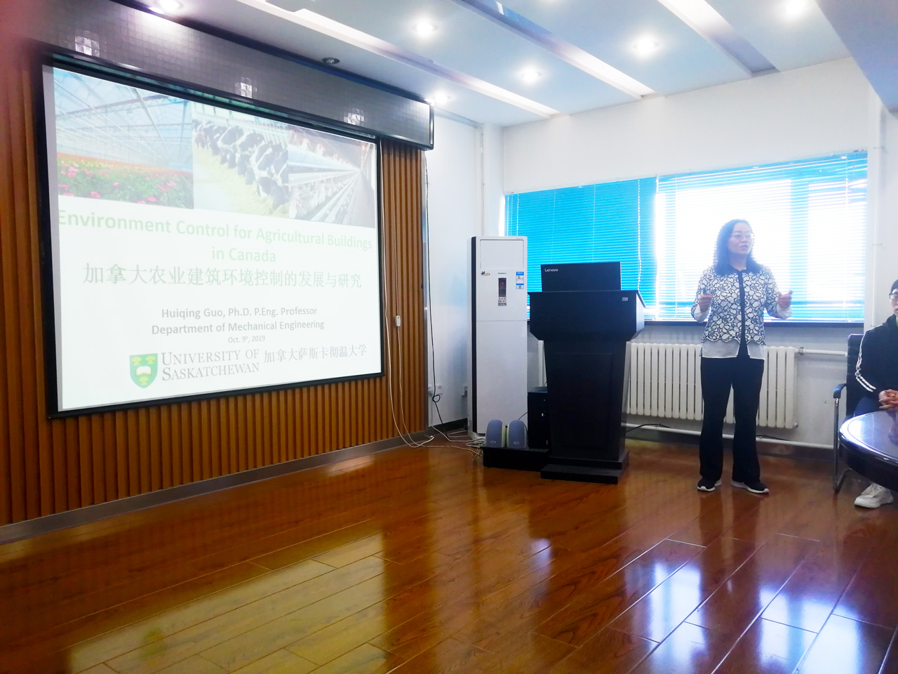 2019年10月9日,应生物与农业工程学院邀请,加拿大萨斯卡彻温大学(University of Saskatchewan)郭慧卿教授在仿生楼512会议室,以“加拿大农业建筑环境控制的发展与研究”为题作了学术报告,并与学院相关研究领域老师和研究生进行了座谈交流。院长于海业、副院长马云海,吉林农业大学工程技术学院袁月明教授等出席。