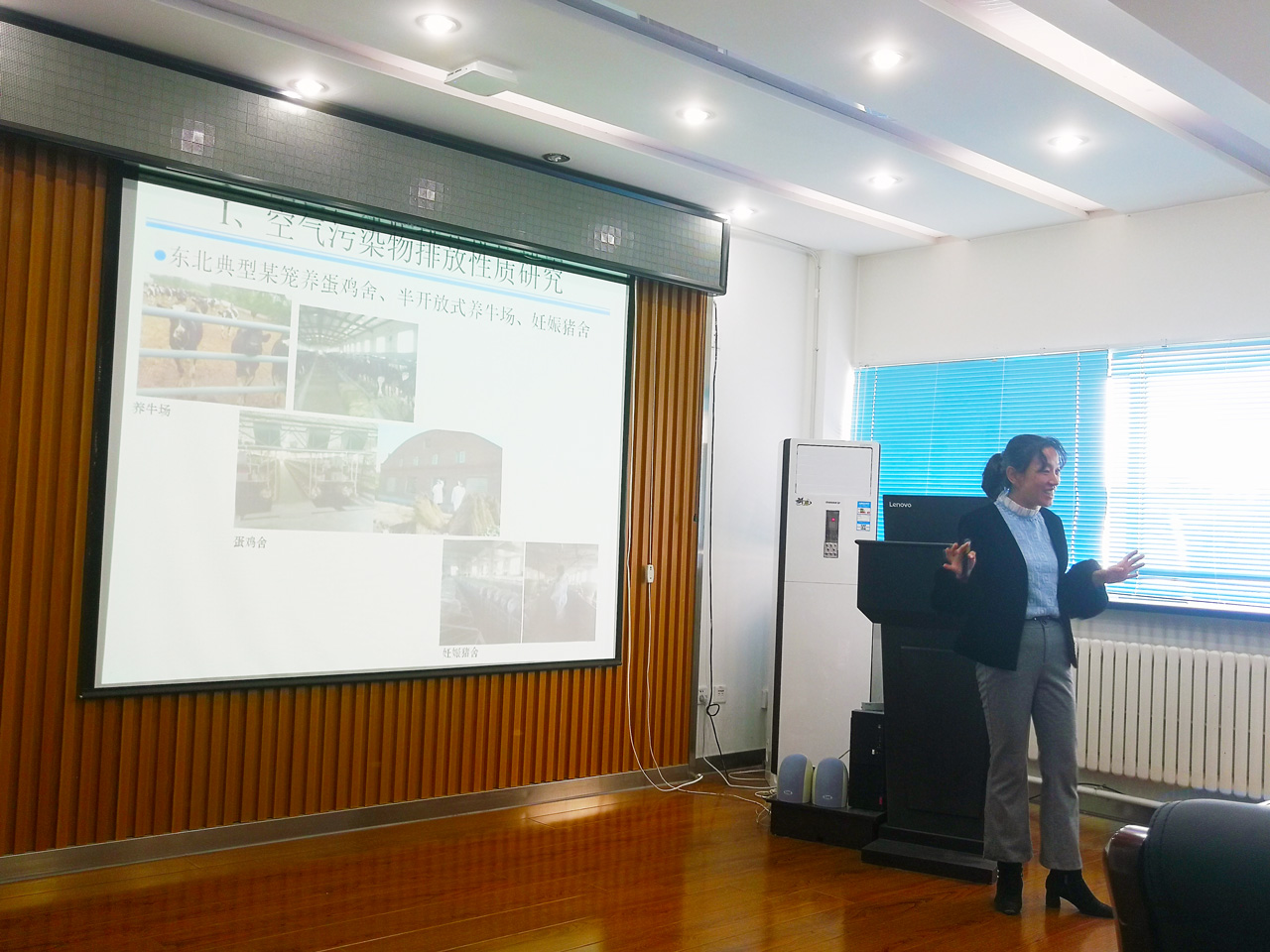 座谈会上,郭慧卿教授介绍了加拿大萨斯卡彻温大学生物工程学院、机械工程学院的概况、研究生招生、学科设置等情况,重点对其长期从事的农业建筑和环境控制的研究工作——包括畜禽舍环境控制、畜禽场有害气体、温室气体和臭气释放与减排及隔离距离模拟、温室环境控制等——作了详尽的介绍;隋媛媛和郭丽老师分别作了“作物信息获取技术”和“空气污染物性质/拦截/过滤控制技术研究”的报告。会上,师生进行了热烈的讨论。