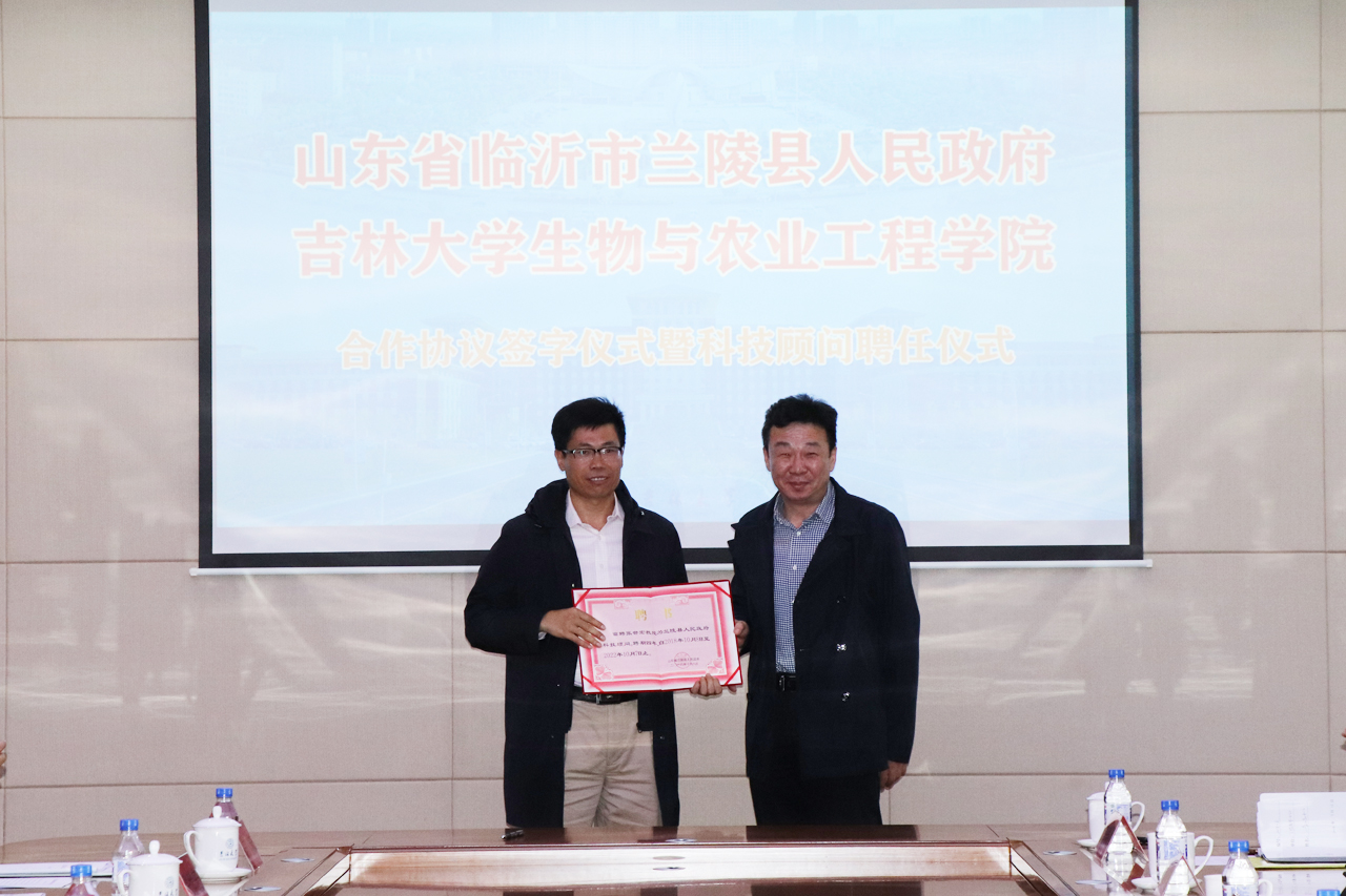 下午3时,兰陵县人民政府与生物与农业工程学院在鼎新楼签署了合作协议,并进行了广泛而深入的座谈。beat365在线体育官网科技开发中心副主任张涛,教务处副处长赵军,植物分子生物学研究室主任、中农煦丰生态科技有限公司首席科学家张世宏,生物与农业工程学院院长于海业、党委书记杨宝泉、博士生导师杨印生教授、行政副院长马研等出席了座谈会。于海业、杨印生、刘昕辉、张世宏教授受聘兰陵县人民政府科技顾问。