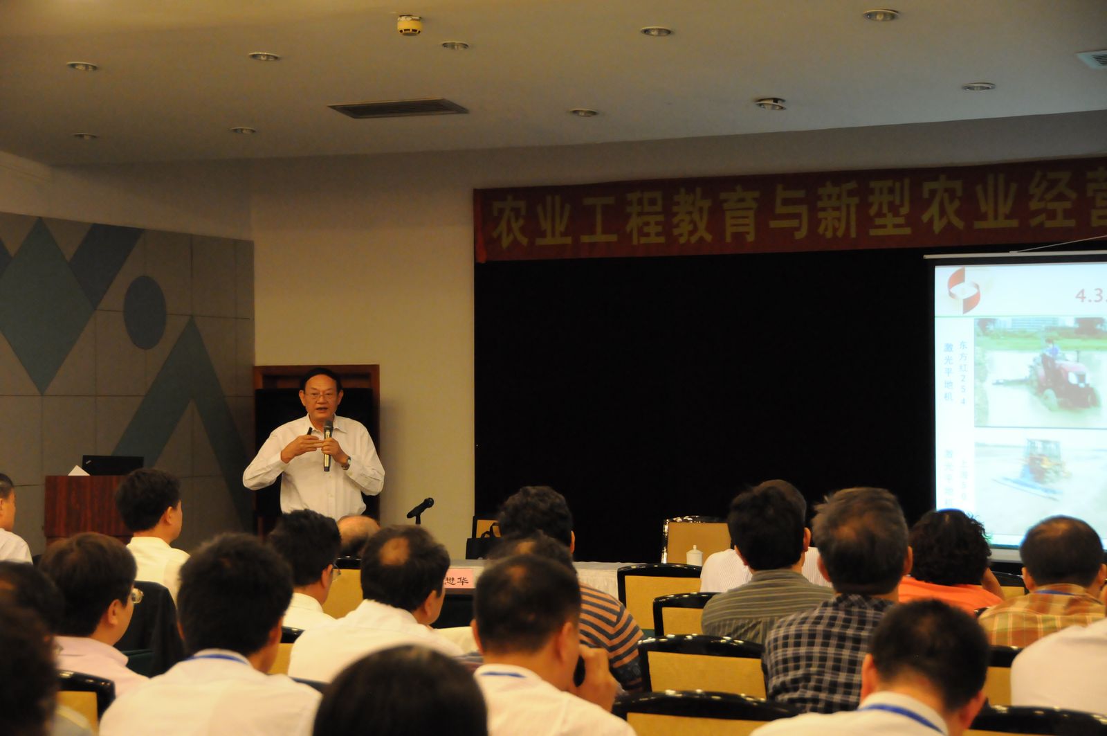 共有中国工程院院士汪懋华教授、中国科学院院士任露泉教授、中国工程院院士罗锡文教授、中国农业机械化科学研究院院长、中国农业机械学会秘书长李树君教授、中国农业工程学会常务副秘书长秦京光研究员、美国堪萨斯州立大学张乃迁教授、俄克拉何马州立大学汪宁副教授和Paul Weckler博士等来自40个国内外高校或科研院所的80余位专家学者参加了本次论坛。本次论坛由3位院士的特邀报告和10个大会报告组成,参会学者们围绕“农业工程教育与新型农业经营主体培育”这一主题,共同研讨农业工程教育在新型农业生产经营主体培育中的作用,探讨新型农业生产经营主体培育途径,这对于推进我国新型农业经营主体的培育和职业农民的成长,从而推进现代农业建设必将起到重要的积极作用,同时也能对政府决策提出很好的政策建议。