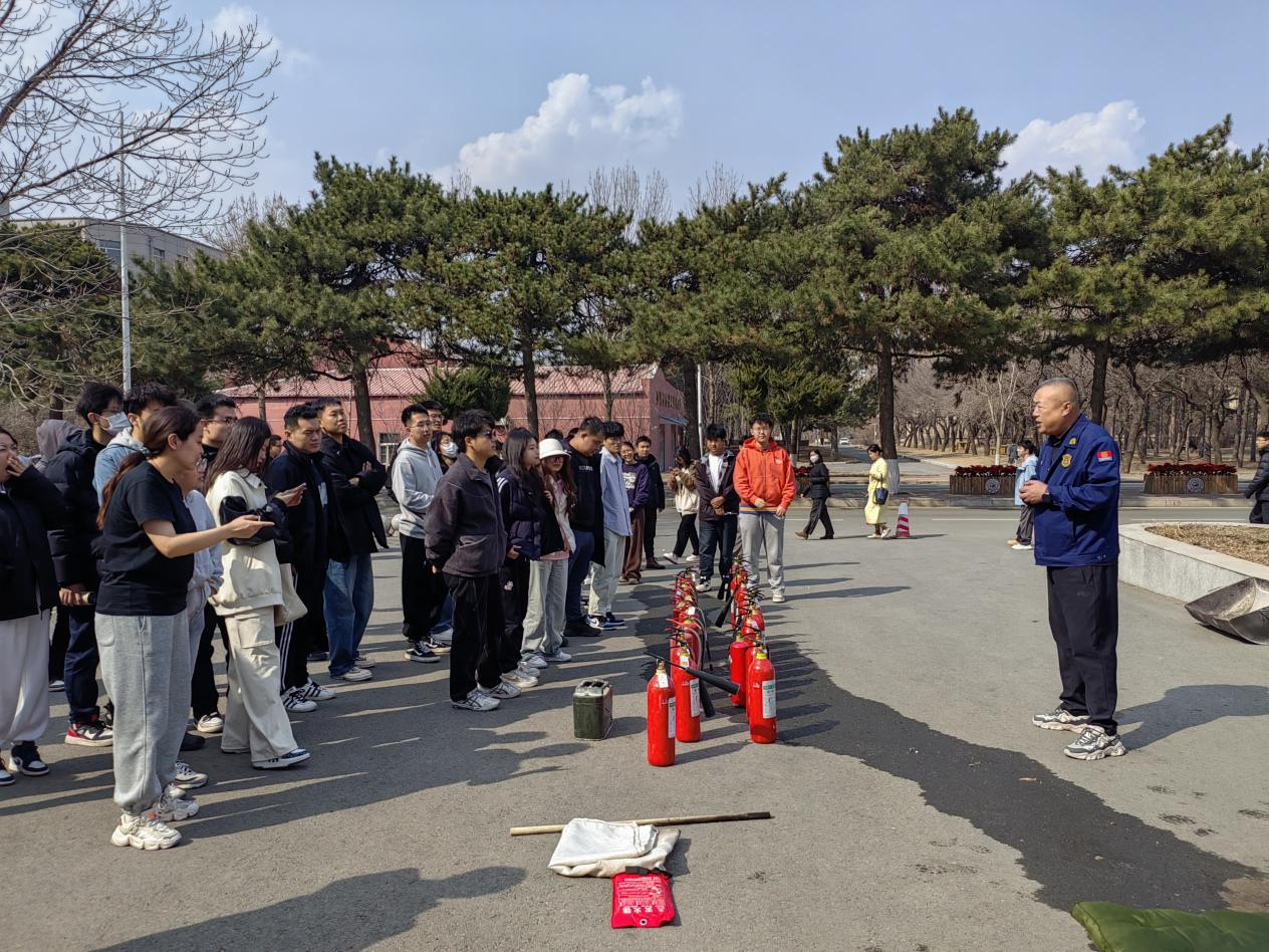 在培训后的疏散演练过程中,仿生楼内师生沿着疏散通道迅速、有序撤离到安全地带。随后,东区保卫办公室消防科的老师模拟真实火情,为同学们演示并教授了灭火毯、灭火器的使用方法和注意事项,并指导同学、老师现场实际操作。