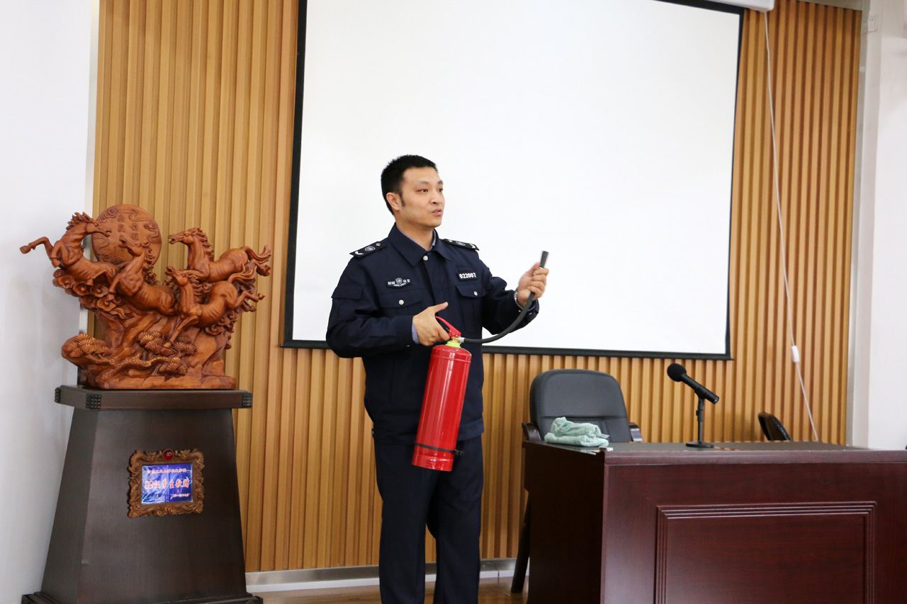 因户外风力超过四级,原定的户外灭火演练临时改为干粉灭火器使用指导。校区防火科科长韩旭从看仪表、防板结、理喷管、去铅封、握喷管、扇形扫射、防止复燃这几个环节进行了指导,使与会教工对干粉灭火器的使用进一步提高了认识。