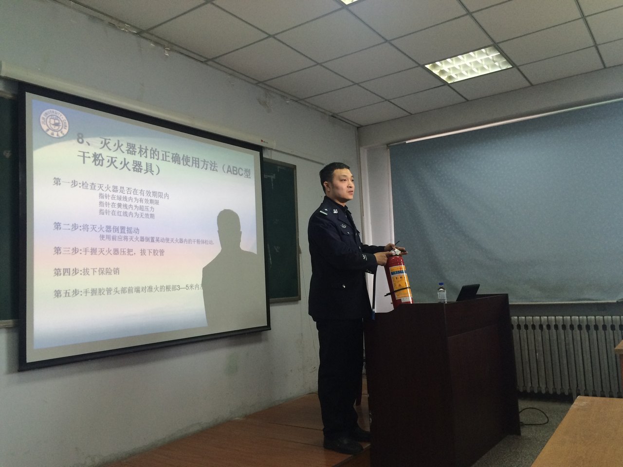 13:30,在农机交通馆508会议室,东区保卫办消防科科长韩旭为三个学院的师生代表约50人作了消防安全知识讲座。他介绍了近年来以河南洛阳东都商厦、吉林辽源中心医院、上海商学院、吉林德惠宝源丰、山东寿光龙源为代表的国内重大火灾的起因、扑救过程、处理结果,还结合案例系统介绍了电气类火灾特点、必备消防常识、火灾常见原因及发展阶段、扑灭初起火灾方法、正确的报警方法等,并详细介绍了逃生原则及方法。