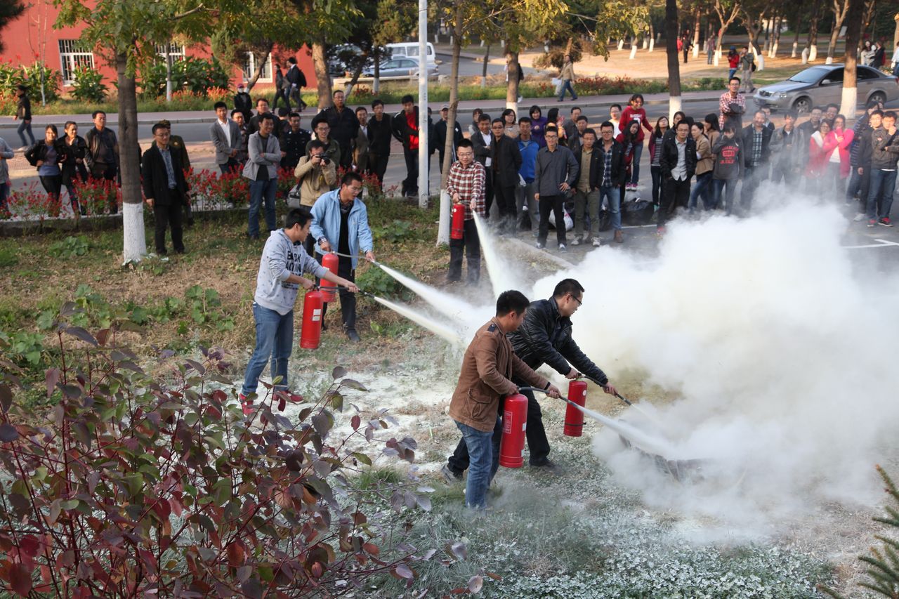 在接下来的灭火演练过程中,教师和学生积极参与,实地演练了灭火器的使用和正确的灭火方法。
