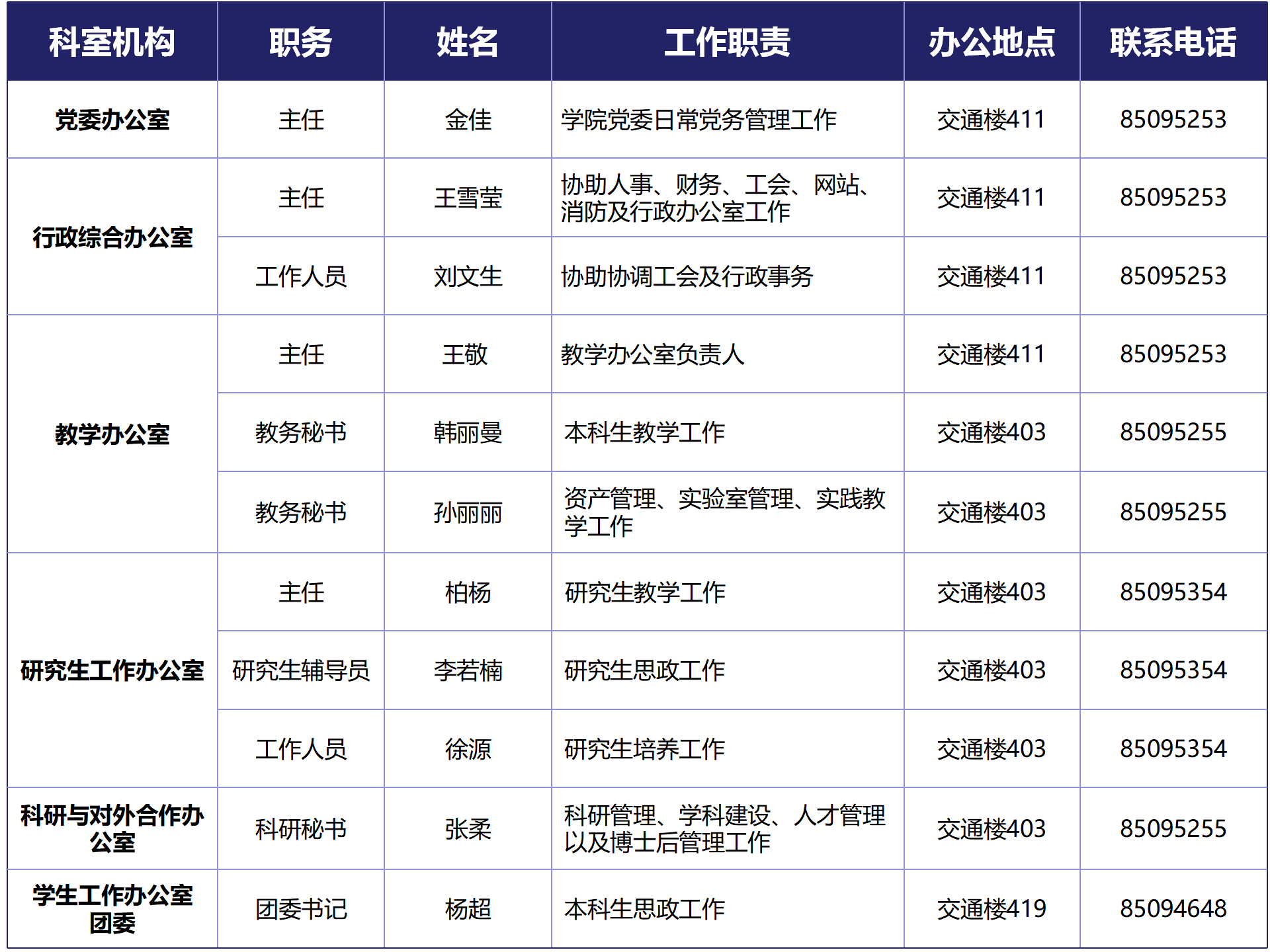 各系行政班子成员